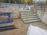 Завершается мощение декоративной плиткой территории вокруг храма. Выполняется облицовка камнем бетонных конструкций, поддерживающих подпорные стены в местах понижения грунта. Выполнен монтаж мраморной плитки на ступени, ведущие к храму. Выполняется отмостка из булыжника вокруг храма. Устроена гидроизоляция.