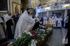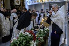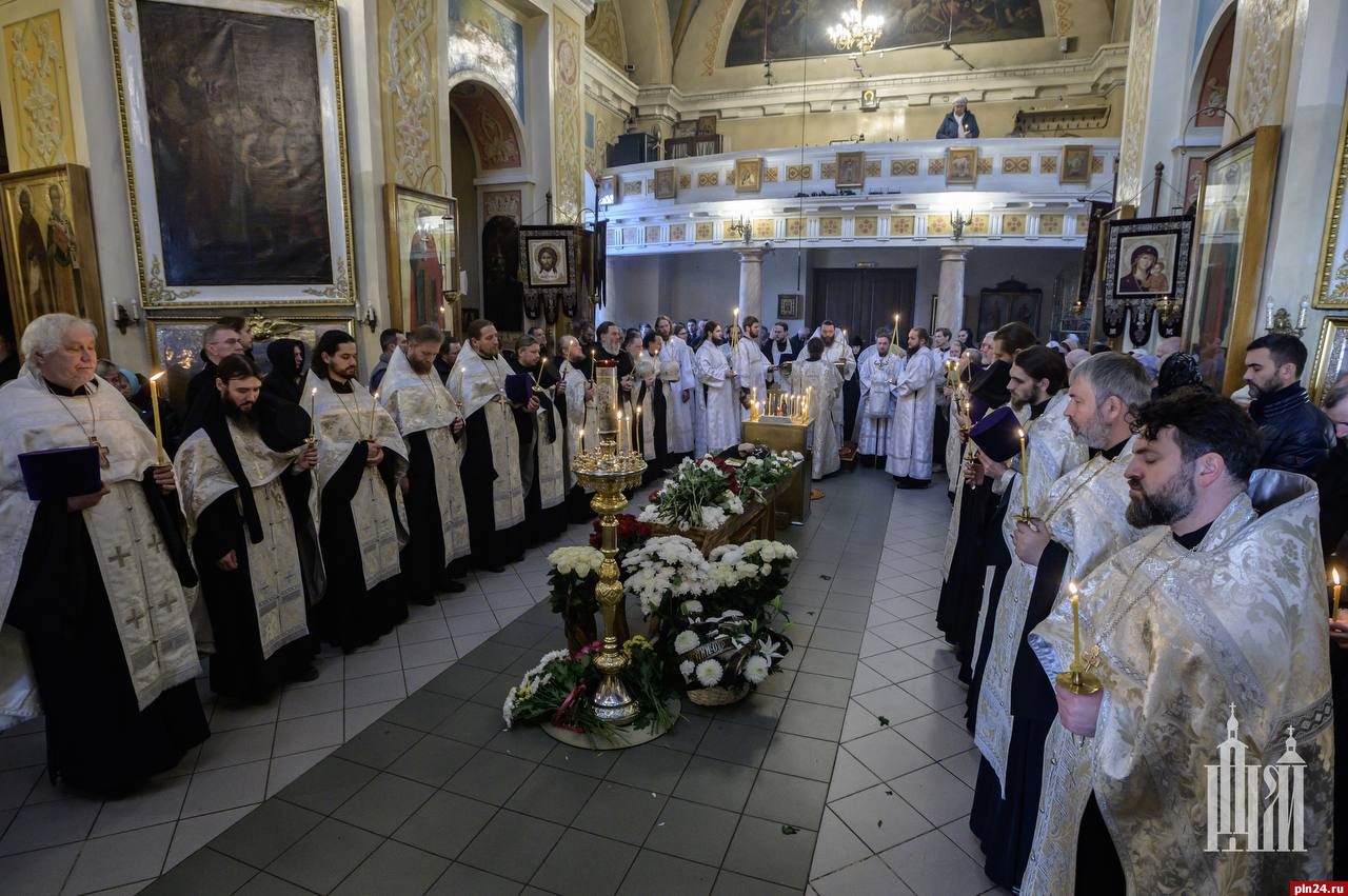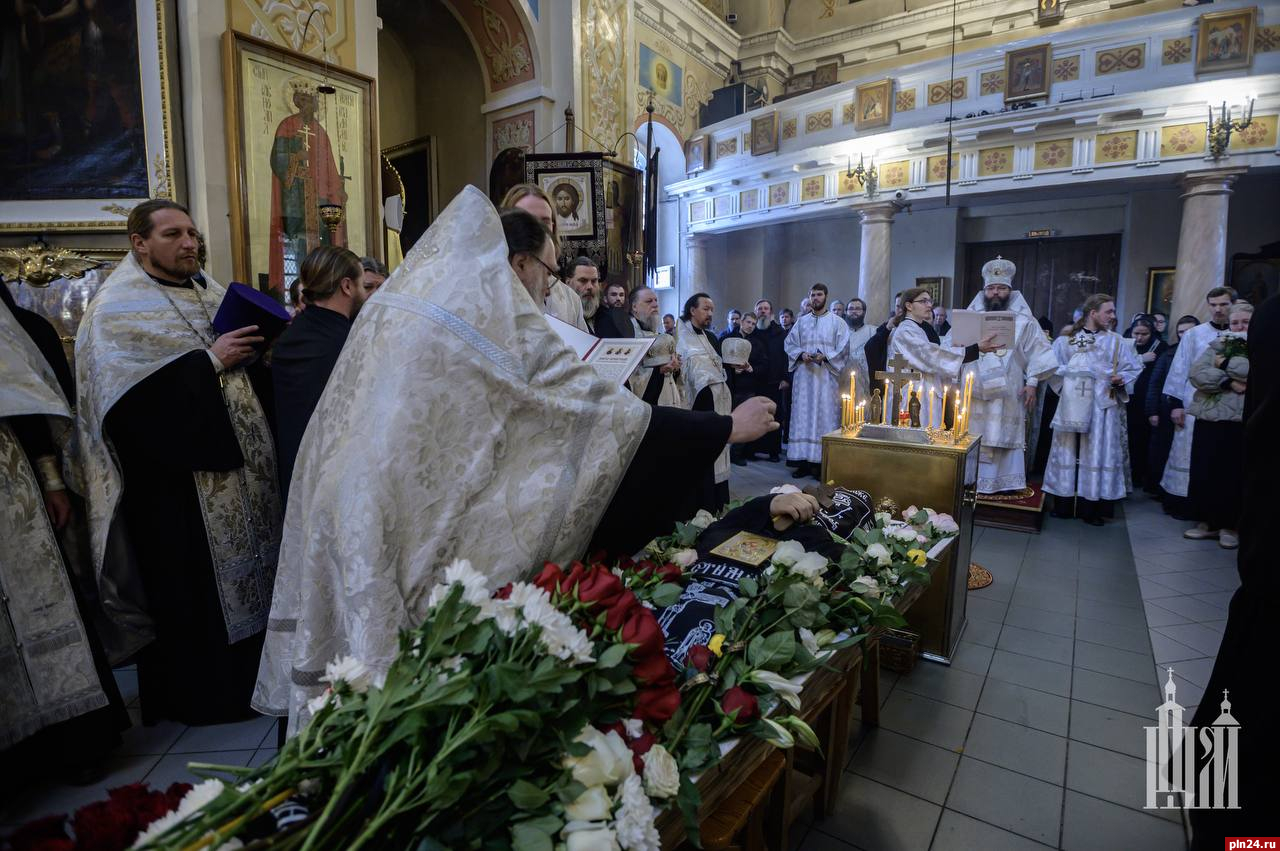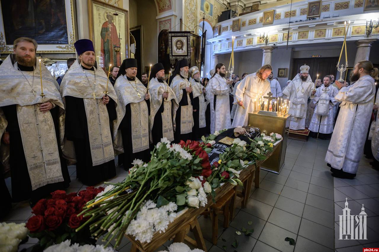 Отпевание в Михайловском соборе возглавил митрополит Псковский и Порховский Матфей. Его высокопреосвященству сослужили: благочинный обители иеромонах Прохор (Андрейчук) с братией и гостями в священном сане.