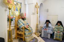 Его Высокопреосвященству сослужили: игумен Савво-Крыпецкой обители иеромонах Всеволод (Сиканов) с монастырским духовенством. Песнопения Литургии исполнил Архиерейский хор под управлением Марии Быковой. За богослужением молились братия обители и многочисленные паломники.
