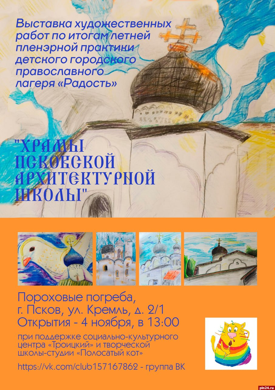 Торжественные открытия двух выставок, посвящённых детскому творчеству, пройдут в Псковском кремле в арт-пространстве «Пороховые погреба» 4 ноября, сообщили в Telegram-канале «Псковская епархия».