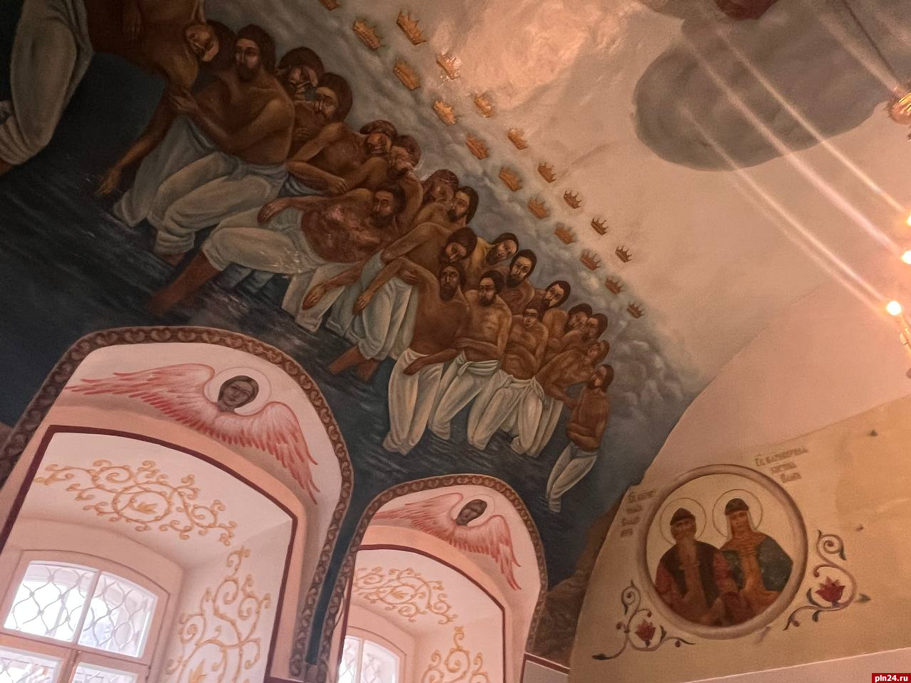 В церкви Сорока Севастийских мучеников в Печорах завершили реставрацию живописи и разобрали леса, сообщили в Telegram-канале «АНО «Возрождение объектов культурного наследия в г. Пскове».