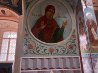 В четверике, на куполе, гранях восьмерика, столбах и стенах (в верхней части), в притворе - росписи, выполненные масляной краской. О них сообщает следующая надпись на северо-восточном столбе: «Храм расписан с 1965 по 1969 годы по образцам древнерусской живописи художниками Ивановым С.П. и Павловским Ю.В. при настоятеле Евстафьеве, церковном старосте Панове Н.П.»... Подобная живопись в алтарной части храма, за исключением свода над престолом, где сохранилась часть композиции «Троицы» хорошего академического письма.