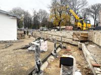 Кроме того, продолжается благоустройство территории. Построен пандус для маломобильных граждан, а вокруг храма укладывают декоративную плитку. Также выполнена облицовка камнем бетонных конструкций подпорных стен. Мраморной плиткой покрыты ступени, ведущие к храму.