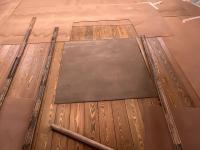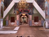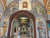 Одним из символичных этапов работ стало возвращение на свое место отреставрированных кованых дверей. Параллельно в галерее храма ведутся работы по устройству полов из белого мрамора, которые будут гармонировать с деревянными полами из сибирской лиственницы в основном объеме храма. Для комфорта прихожан в притворе предусмотрена система теплого пола.