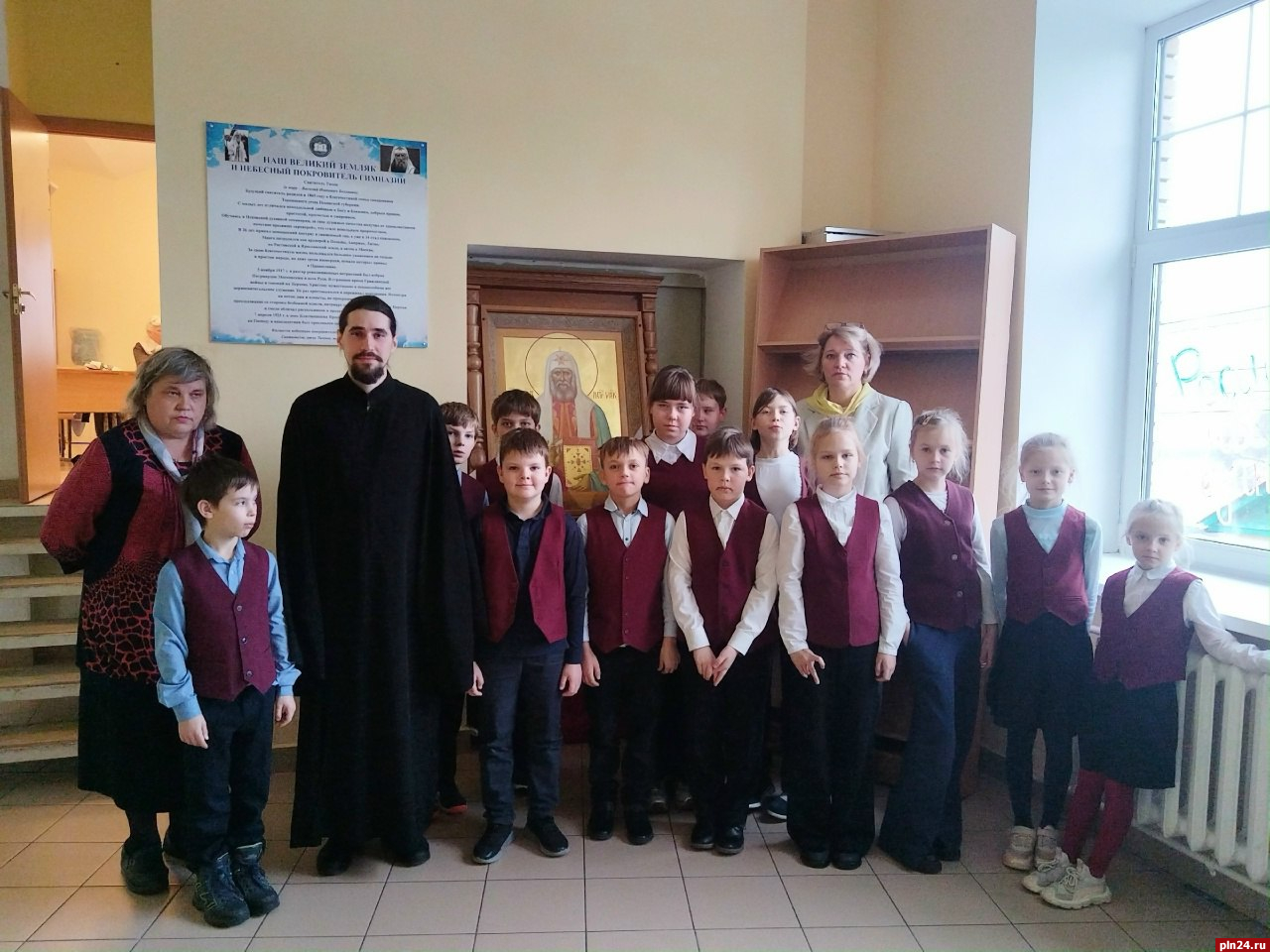 Урок «Герой нашего времени: святитель Тихон» провели для учеников третьего класса псковской гимназии №28 вчера, 19 ноября. Занятие провела Любовь Чичикова при участии духовника гимназистов иерея Евгения Пустозерова и советника директора по воспитанию Елены Павловой. Об этом сообщили в Псковской епархии.