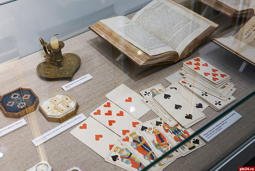 Важная составляющая выставки — предметы быта поэта и служивого: от походных ранца и фляги до подсвечников, подзывного колокольчика и игральных карт (французская колода XIX века из 52 листов, без джокеров) и подставки для смачивания пальцев во время карточной игры.