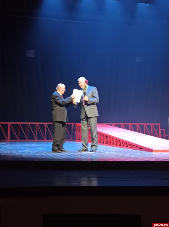 Перед началом торжественного мероприятия прозвучали слова поздравлений. От имени главы города Великие Луки сотрудников театра поздравил Николай Андросович.
