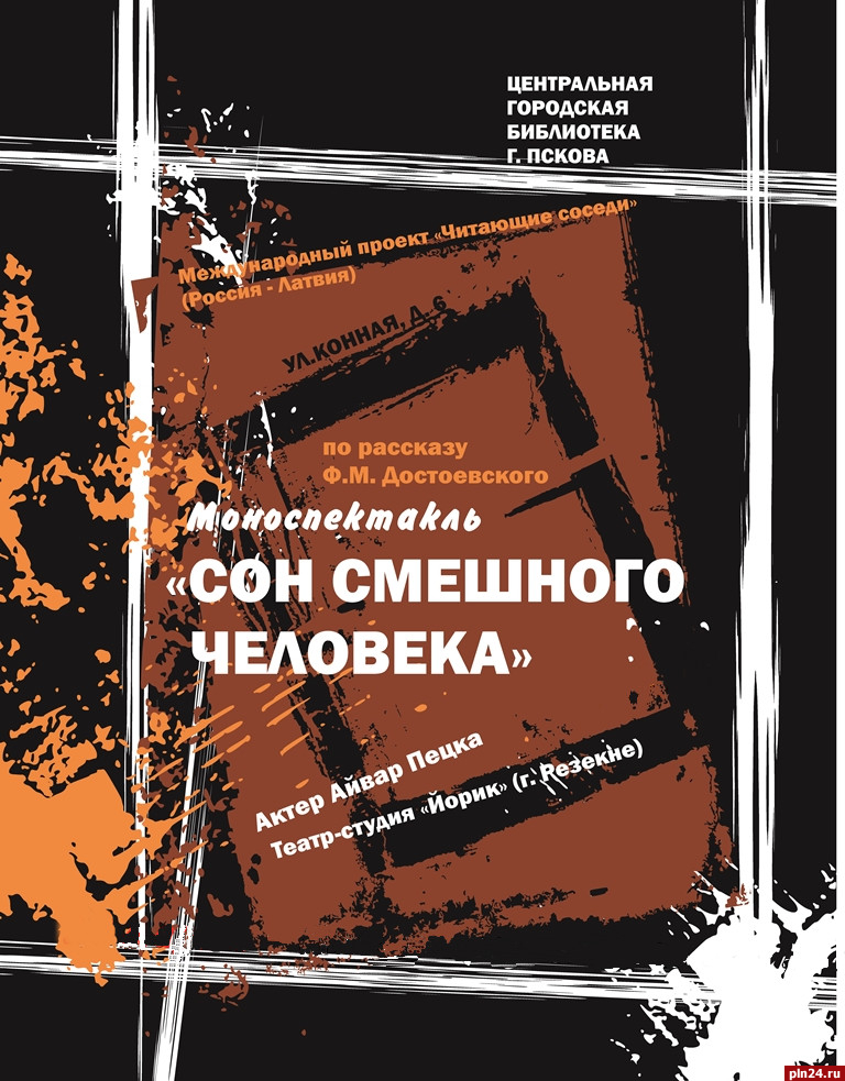 Видеопоказ пьесы по одноименному рассказу Федора Достоевского «Сон смешного человека» в исполнении латгальского актера и режиссера театра-студии «Йорик» пройдет в библиотеке на Конной в 17.00.