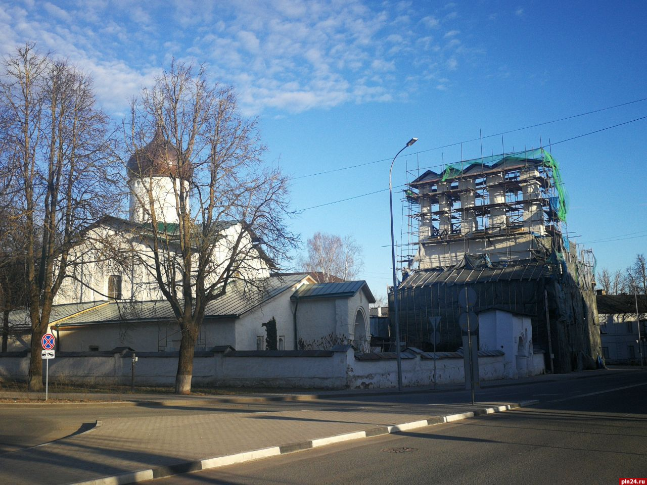 Реставраторы восстановили ранее утраченные четыре пролета на отдельно стоящей звоннице церкви Косьмы и Дамиана с Примостья в Пскове, передает корреспондент Псковской Ленты Новостей.
