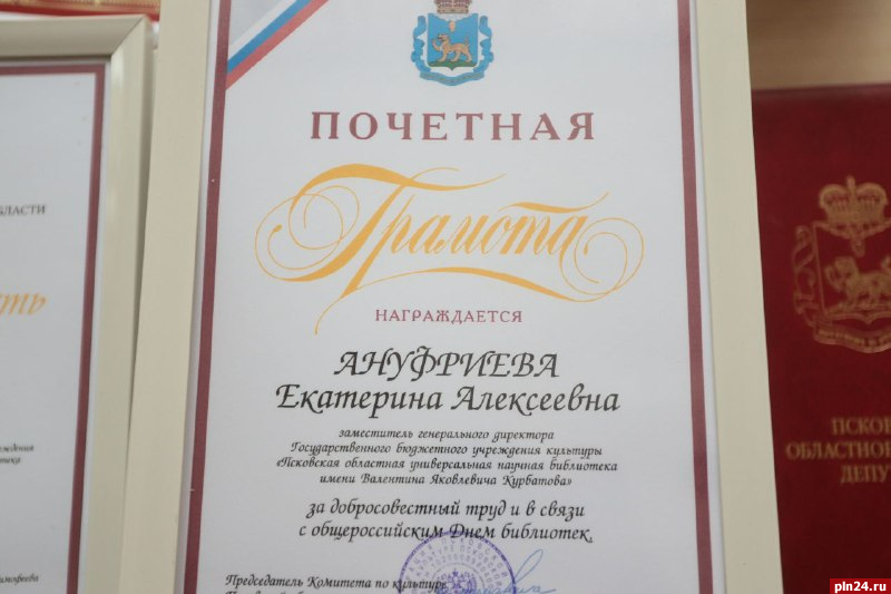 Почетные грамоты и благодарственные письма комитета по культуре Псковской области вручили работникам библиотечной сферы различных муниципалитетов региона.