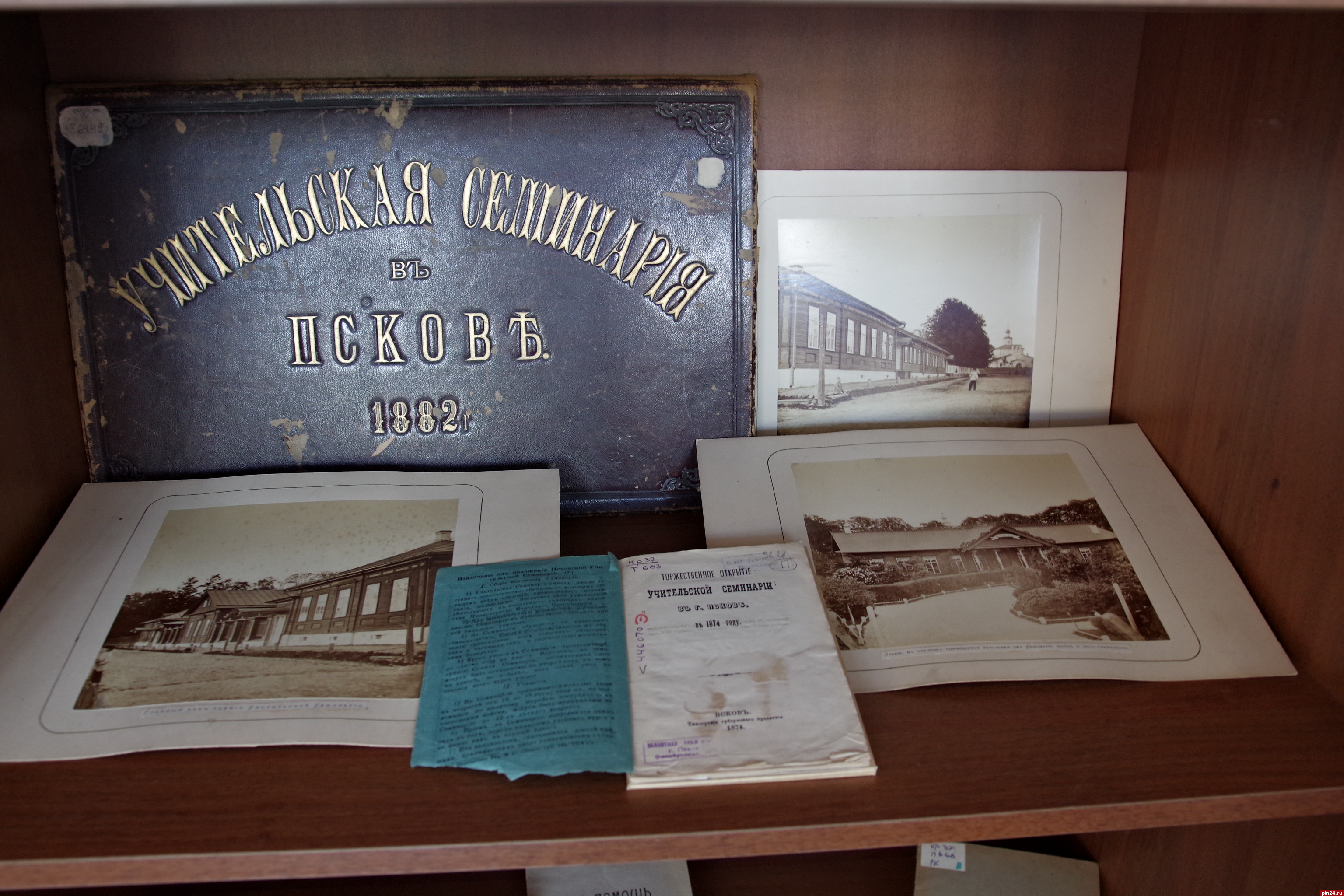 Первым эту тему затронул историк и краевед Иван Василев в конце XIX века. Он проанализировал систему подготовки педагогических кадров в Псковской учительской семинарии и на местных педагогических курсах, оценил роль губернского и уездных земств в распространении грамотности среди населения. На выставке представлены его «Заметки о народном образовании в Псковской губернии».