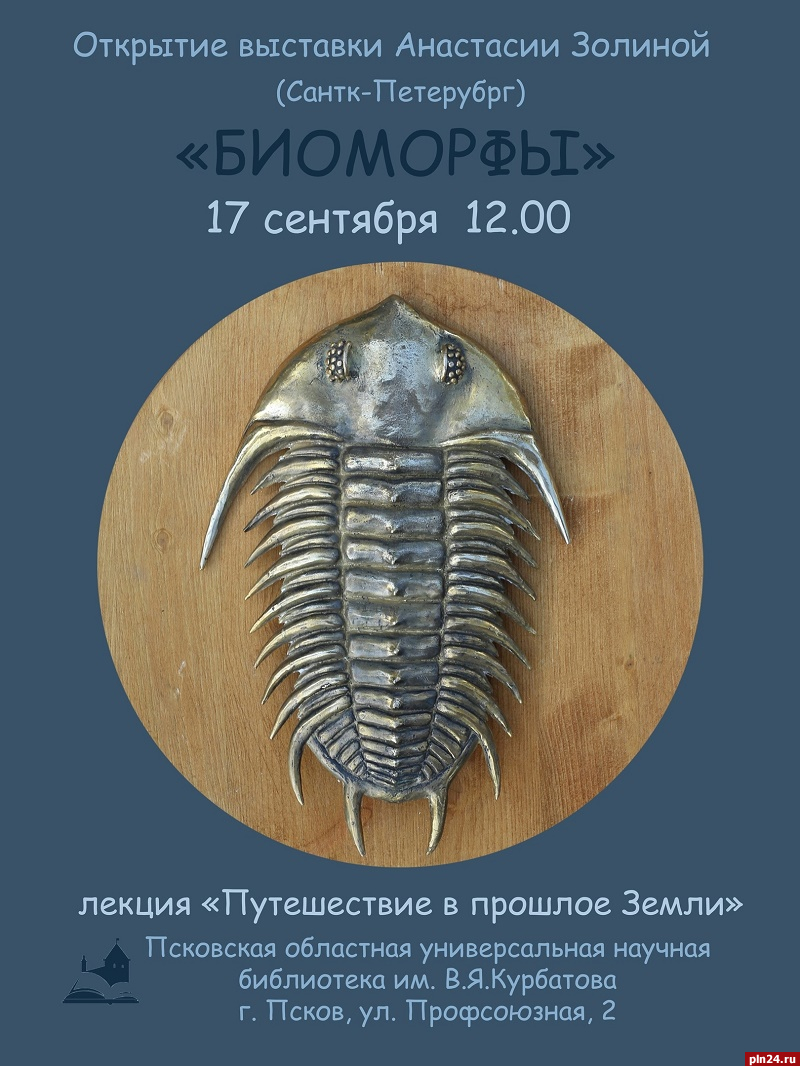 Выставка «Биоморфы» петербургского биолога, научного сотрудника Ботанического института имени В. Л. Комарова РАН Анастасии Золдиной откроется 17 сентября в Пскове. Об этом Псковской Ленте Новостей сообщили в пресс-службе Псковской областной универсальной научной библиотеки имени В. Я. Курбатова.