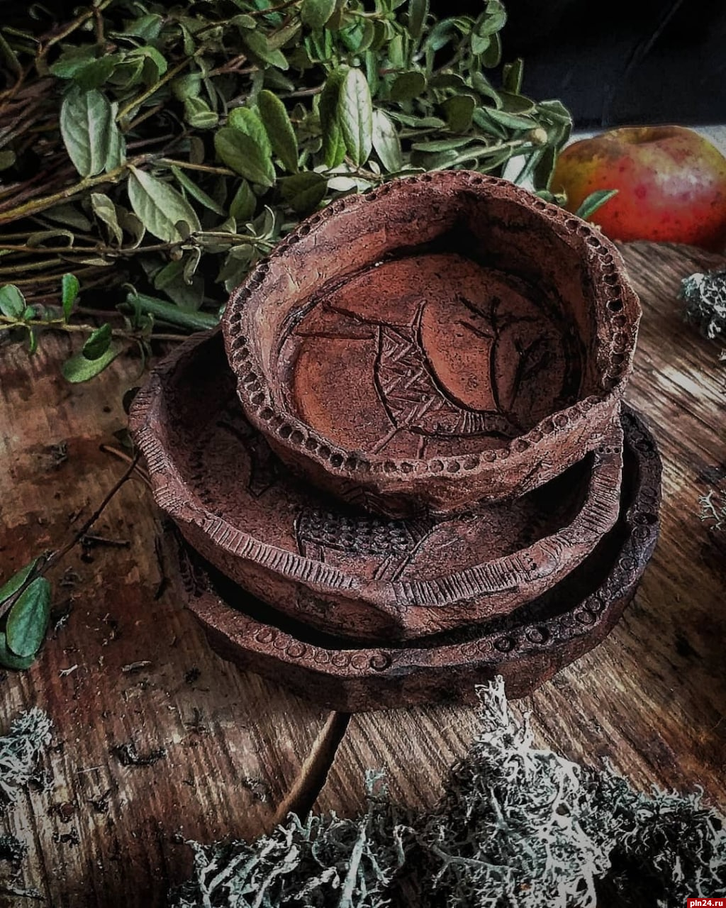 Ее автор – молодая псковская художница и керамист Наталия Грищенко. Ее стиль – это квинтэссенция скандинавской этники (с орнаментами и зооморфными темами) и собственных воображаемых миров, отметили организаторы выставки.