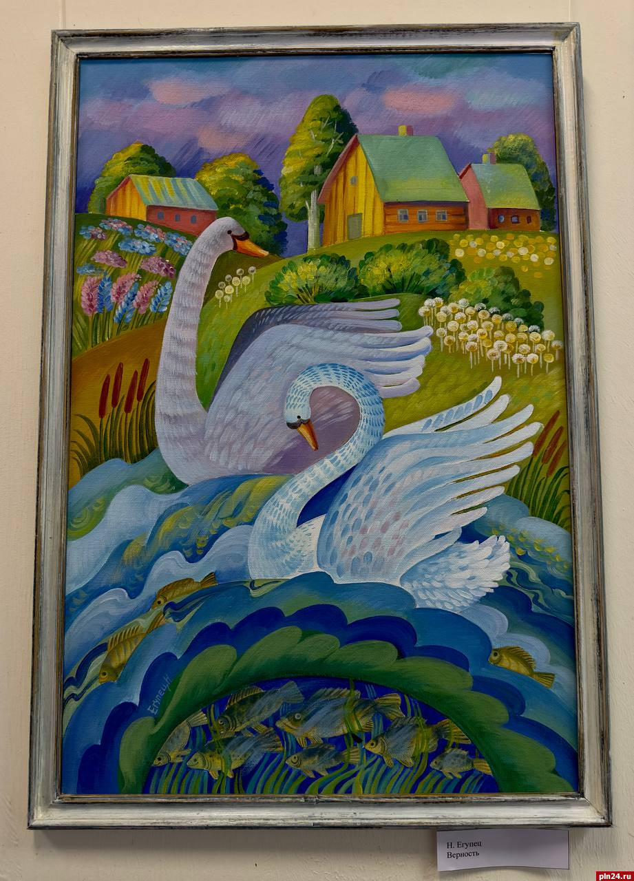 Выставка в библиотеке на Конной интересна тем, что на ней представлены не только образцы созданных Натальей Егупец росписей по дереву и деревянные скульптуры Павла Егупца, чем эти два художника всем известны, но и их редкие живописные и графические работы. В том числе рисунки Павла Егупца, которые он, по его же собственным словам, прятал от публики.