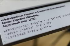 Главная цель проекта – создание инклюзивной среды и активное включение в художественную жизнь страны незрячих людей. В выставочном пространстве представили восемь рельефных полотен, выполненных из акрилового гипса, которые представляют восемь святых Русской православной церкви.
