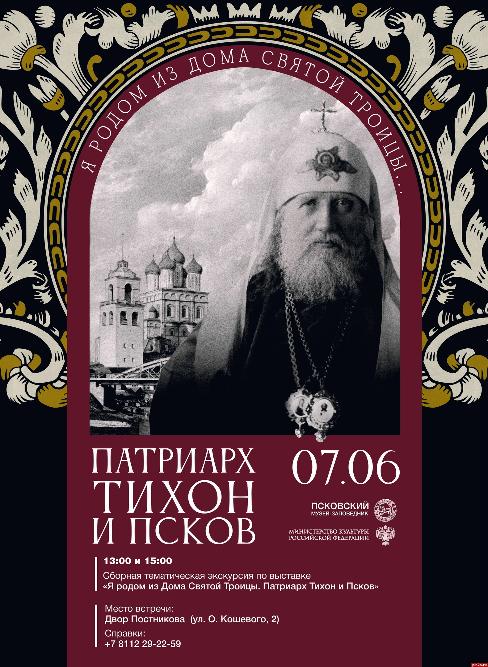 На экскурсии предлагают проследить жизненный путь и служение Патриарха Тихона, его духовную связь с Псковской землей. В пространстве залов Палат Постникова представлено более 100 экспонатов из фондов Псковского музея-заповедника и партнеров выставочного проекта. Это мемориальные предметы и оригиналы архивных документов, связанные с личностью Патриарха Тихона, а также живописные произведения художника Филиппа Москвитина из цикла «Патриарх Тихон и его время».