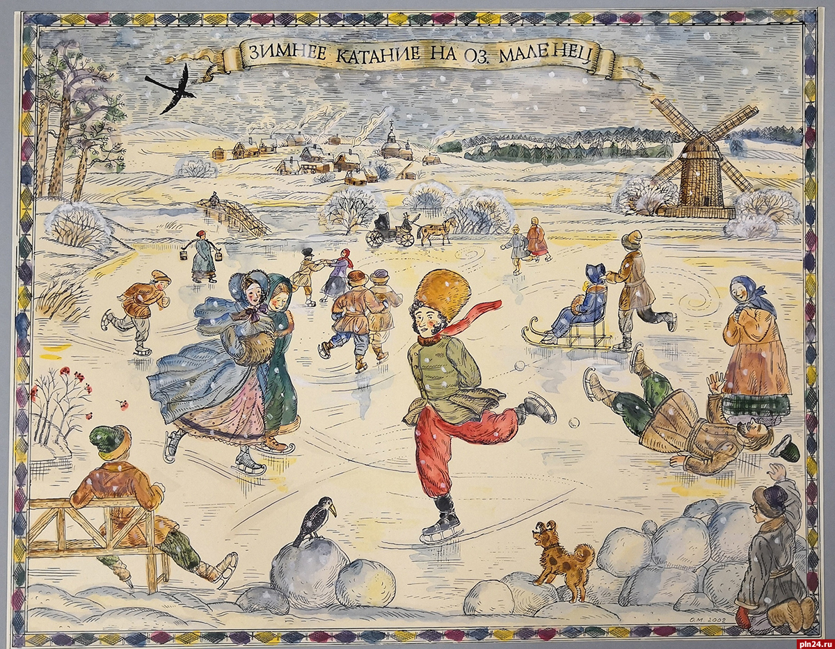 Пушкин-конькобежец на картине Ольги Муратовой «Зимнее катание на озере Маленец». Из фондов музея-заповедника «Михайловское»