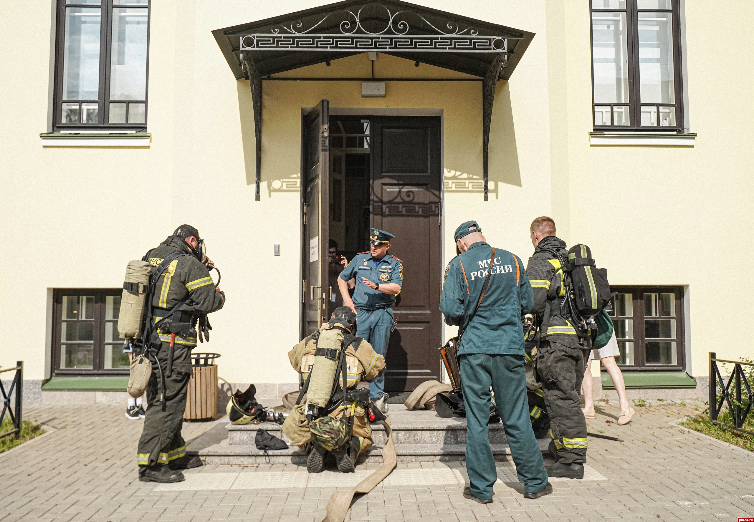 По легенде, в реставрационной мастерской, находящейся в Картинной галерее, произошло возгорание. После сигнала о происшествии на место оперативно прибыли 12 единиц техники, среди которых 10 пожарных машин, ГИБДД и скорая помощь, и 49 человек личного состава. В мероприятии приняли участие генеральный директор Псковского музея-заповедника Светлана Мельникова и заместитель начальника Главного управления МЧС России по Псковской области по государственной противопожарной службе, полковник внутренней службы Андрей Никулин.