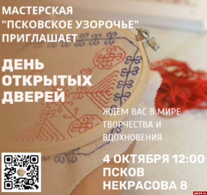 День открытых дверей пройдёт в мастерской женских ремёсел «Псковское узорочье» в субботу, 4 октября. Об этом сообщили в Псковском областном центре народного творчества.