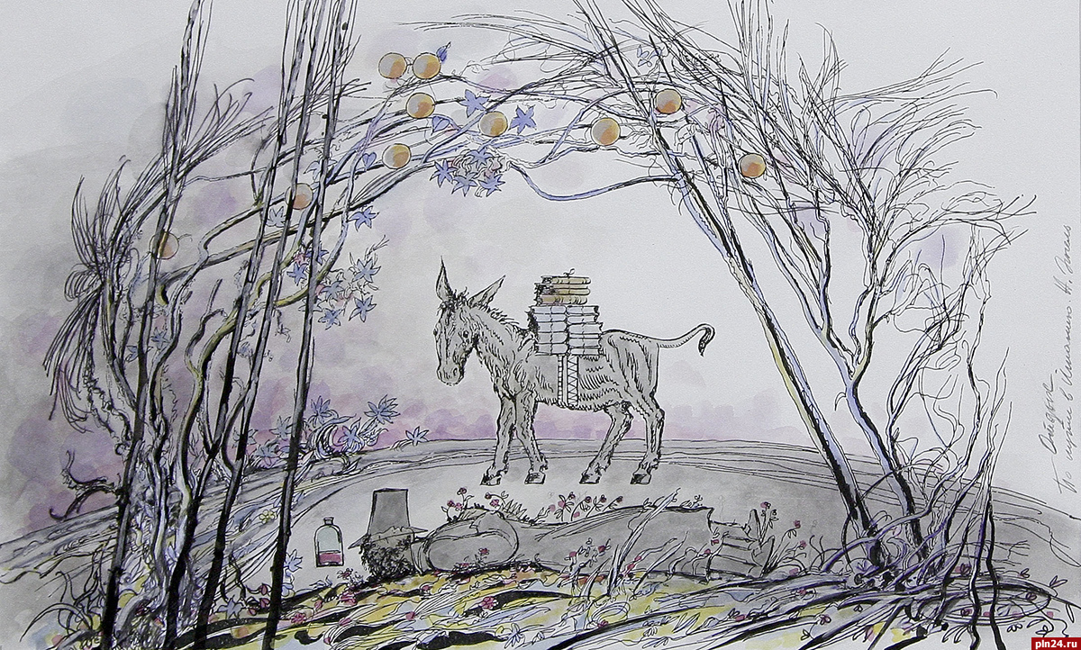 Книжная тема в «пушкиниане» Энгеля Насибулина. Рисунок из фондов музея-заповедника «Михайловское»