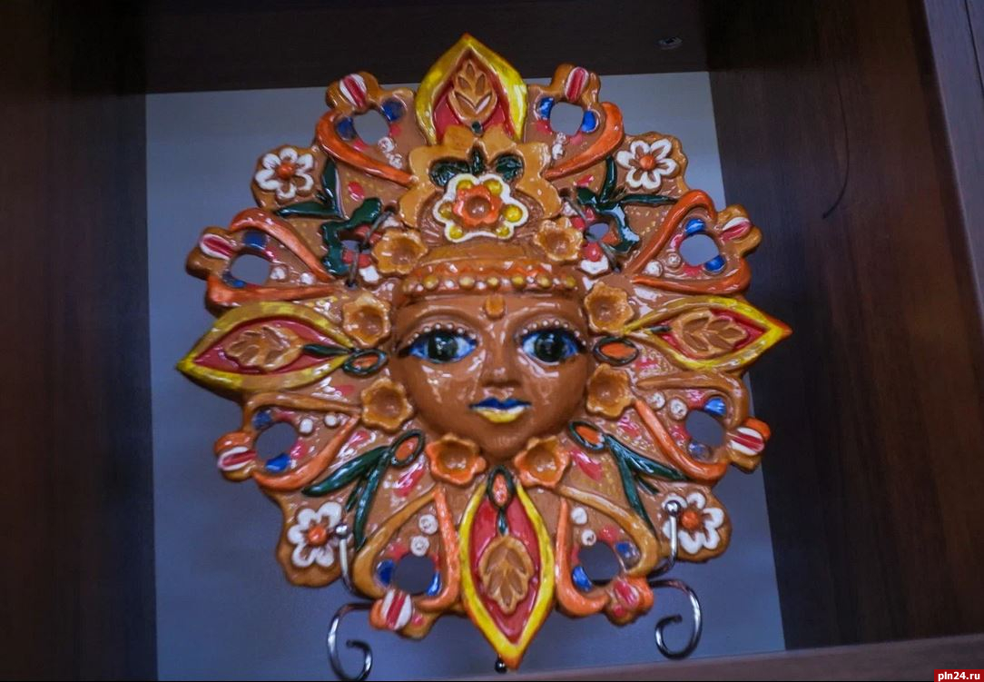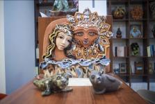 Также она рассказала, что подсмотрела в Чехии традицию вешать над дверьми керамические солнца и теперь тоже лепит такие (на выставке можно увидеть «летнее» и «осеннее»).