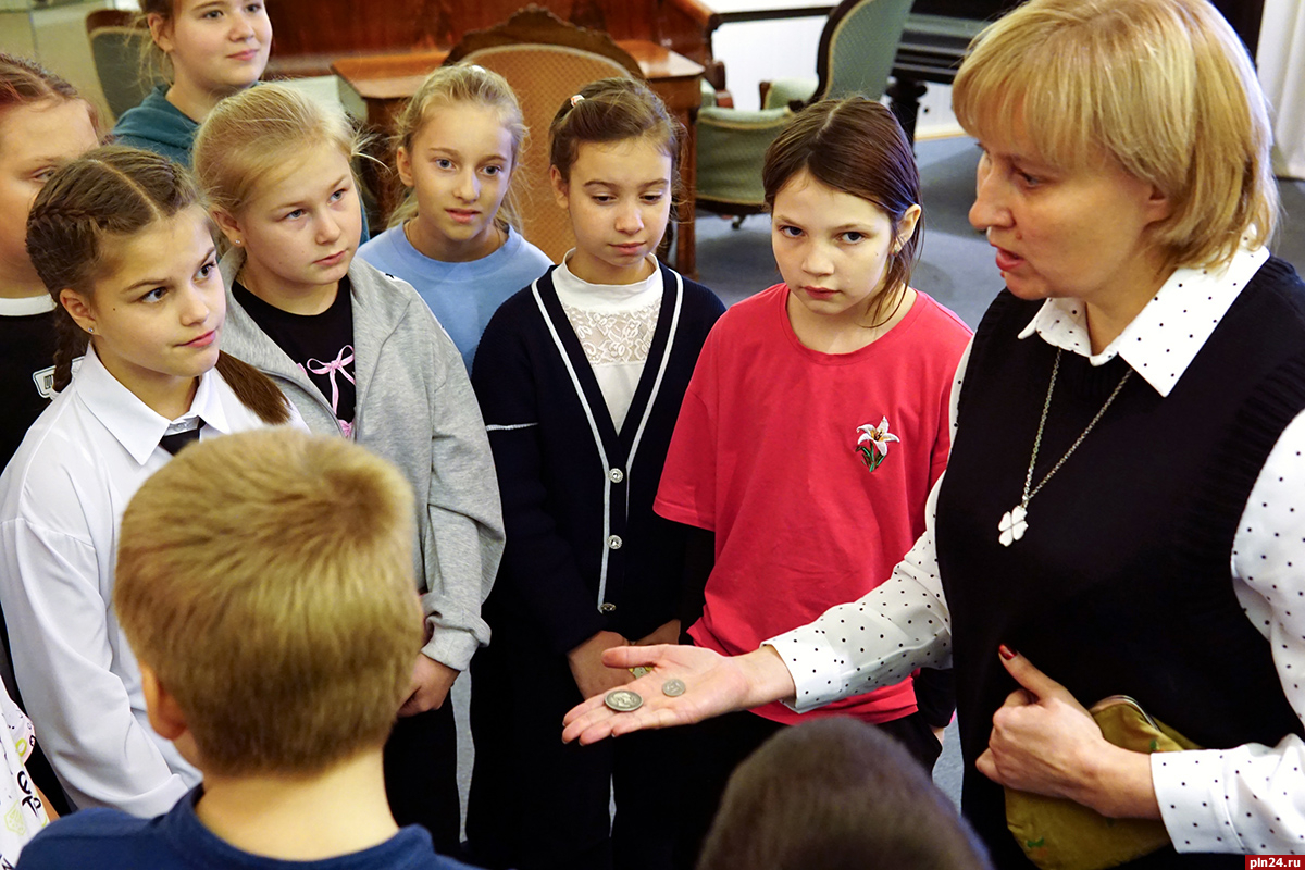 Занятие «Жили-были деньги» провели в Государственном музее-заповеднике А.С. Пушкина «Михайловское» для учеников Пушкиногорской средней школы имени Пушкина, рассказали корреспонденту Псковской Ленты Новостей в музее.