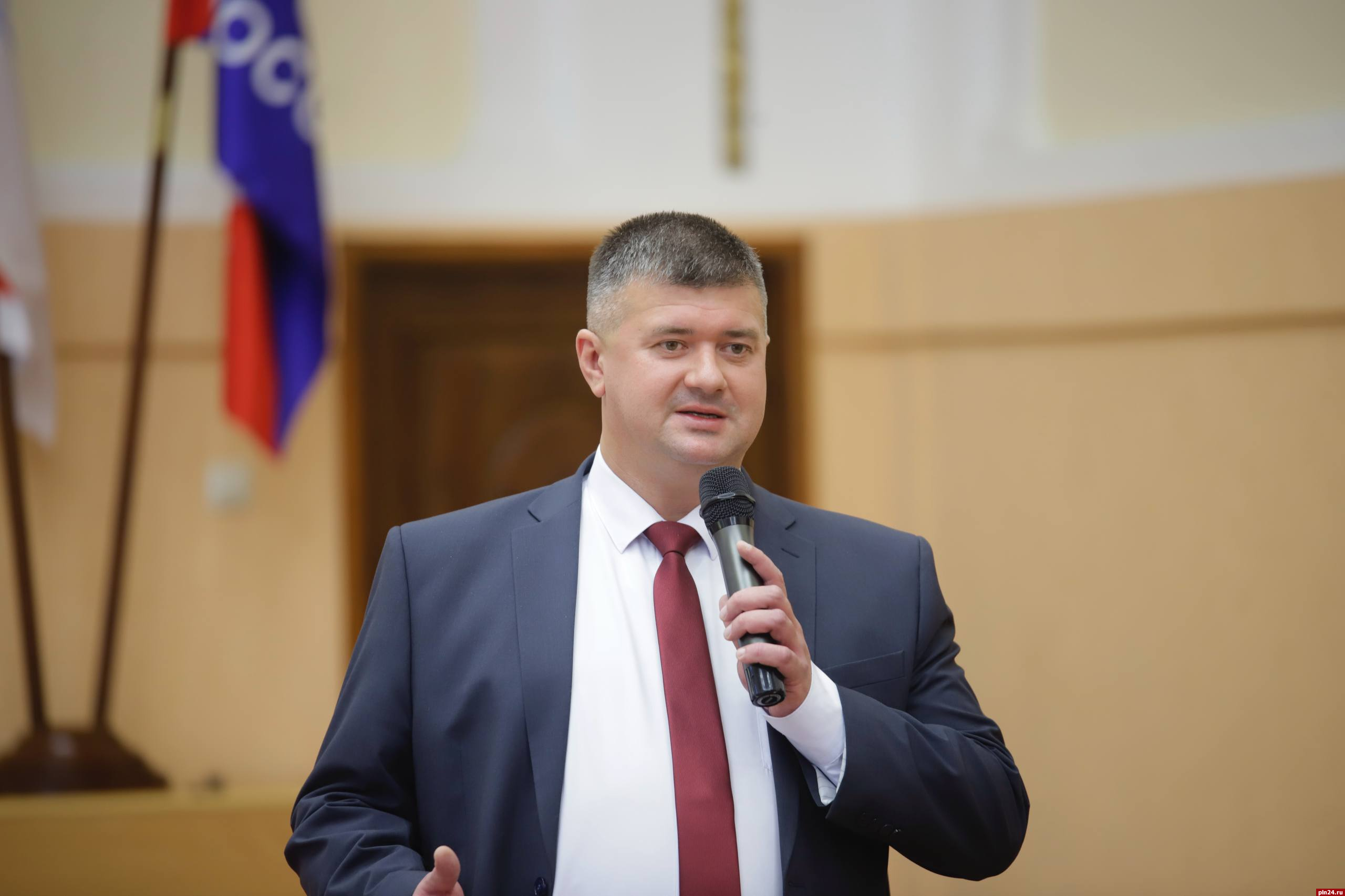 С приветствием выступил председатель Псковского областного совета профсоюзов Игорь Иванов.