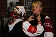 Хранитель фондов Эне Лыйв рассказала о музее и вместе с дочерью, смотрителем, руководителем музейного семейного ансамбля «Овсяные хлопья» Юлией Лыйв продемонстрировала костюм женщины сето.