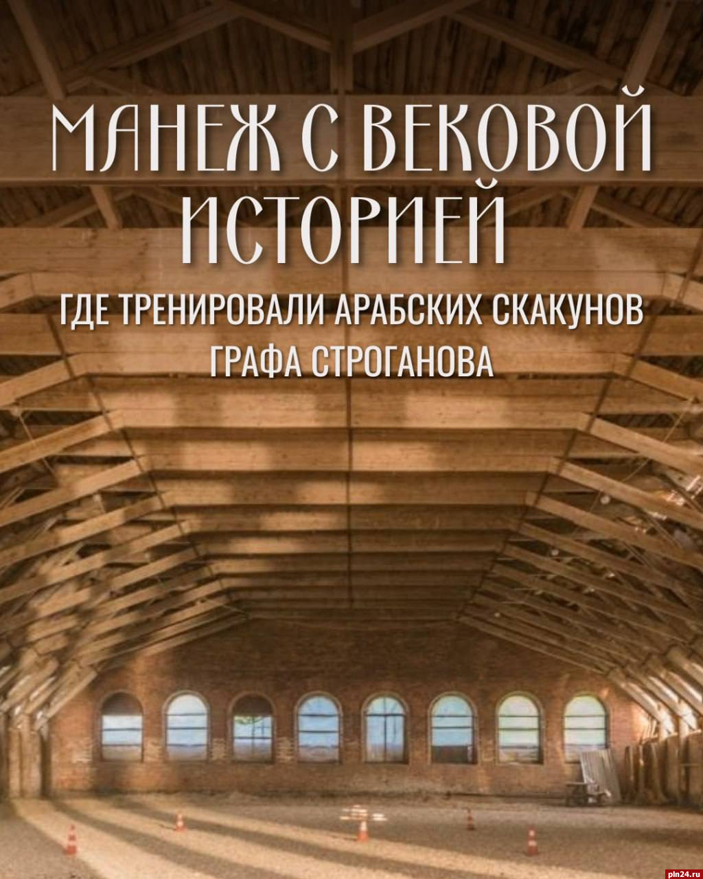 Его построили в конце XIX века при графе Сергее Строганове, страстном охотнике и основателе строгановского конного завода. Отмечается, что манеж создавался не как украшение, а как инженерное чудо своего времени — просторный зал для тренировки породистых арабских лошадей, выездки и занятий с молодыми скакунами.