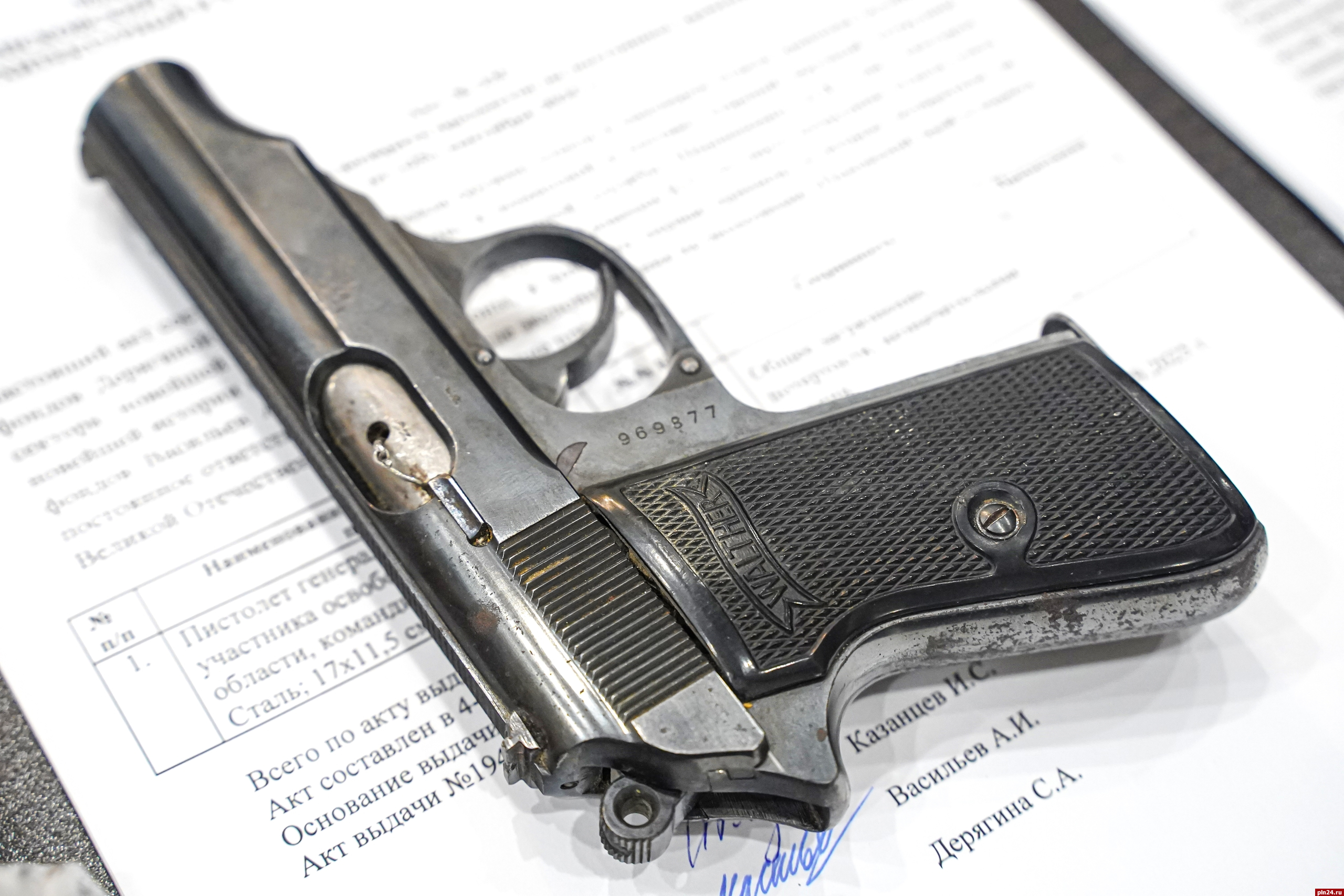 На пистолете Walther PP нанесена гравировка: «Пистолет генерала Стученко А.Т., взятый в бою 30.07.1943 г. Номер пистолета 969877».