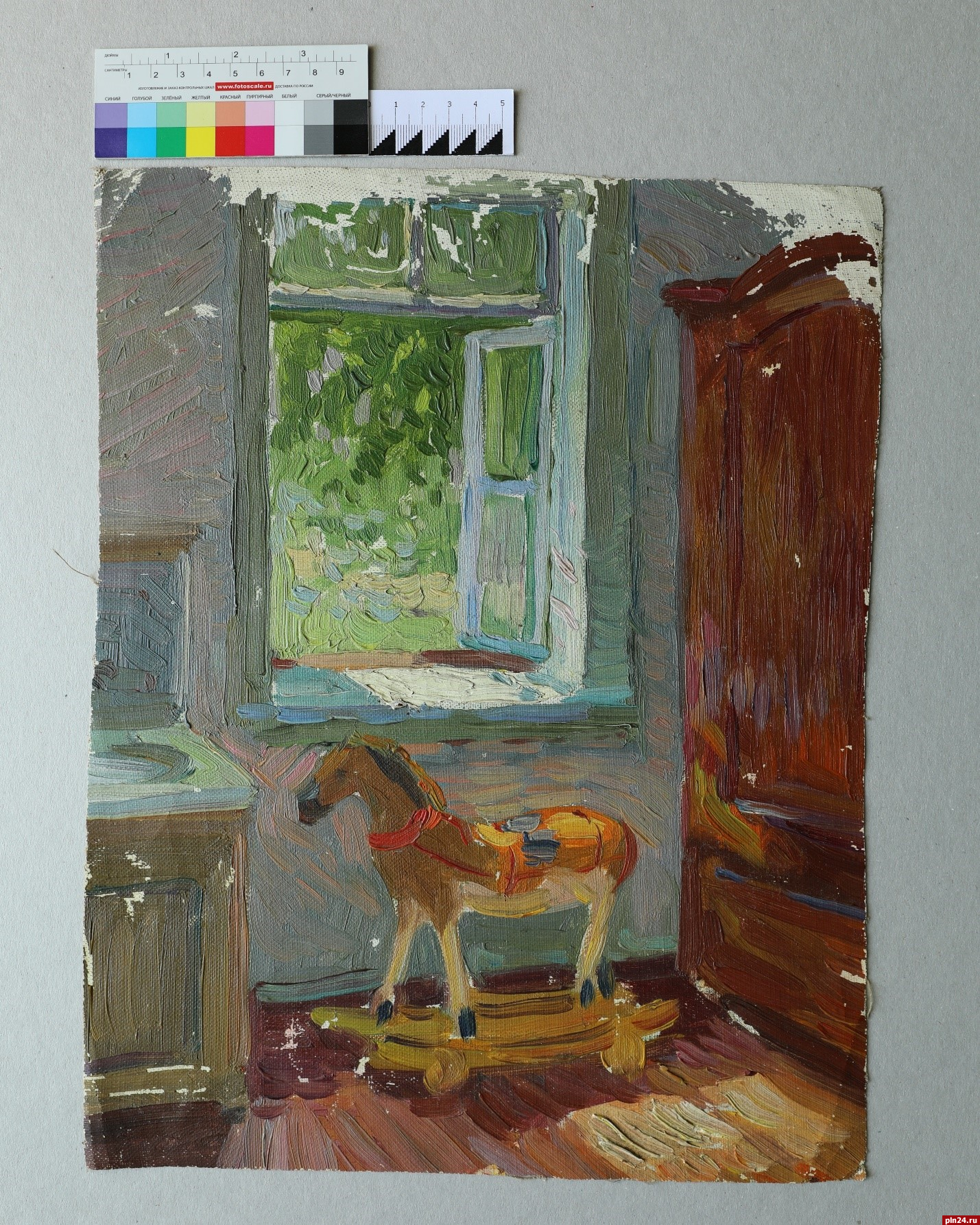 Реставраторы восстановили картину передвижника Бориса Смирнова «Солнечный день» (1914). Картина поступила в реставрацию без подрамника с неровно обрезанными краями и крупными утратами красочного слоя до грунта. Изображение выполнено методом a la prima. Реставраторы укрепили грунт и красочный слой, подведя новые кромки для натяжения картины на подрамник и сымитировав авторские мазки.