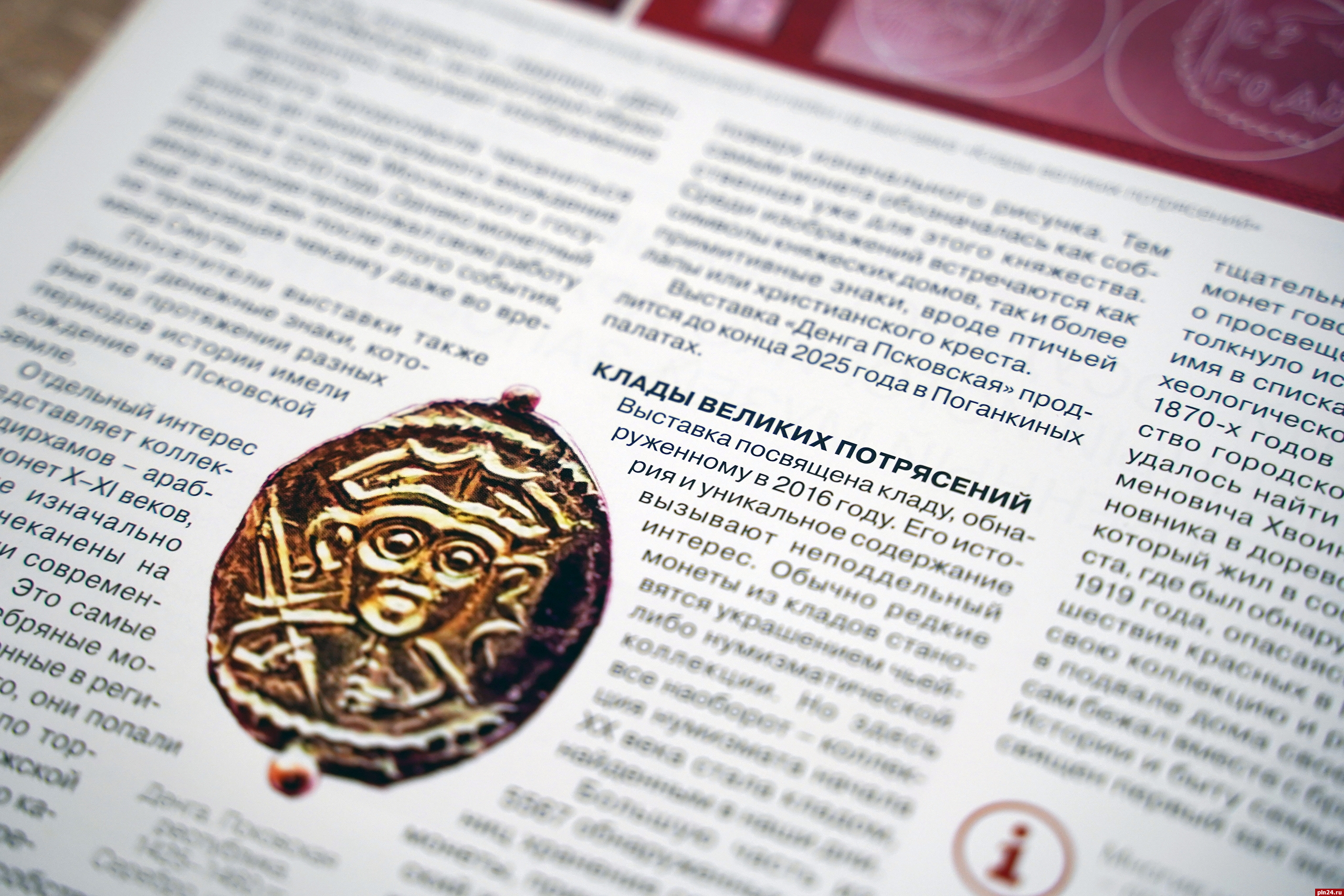 В сентябрьском номере популярного журнала о монетах и монетном рынке «Золотой червонец» в разделе «Нумизматический маршрут» можно найти статью о выставках Псковского музея-заповедника – «Денга Псковская» и «Клады великих потрясений», сообщили Псковской Ленте Новостей в музее.