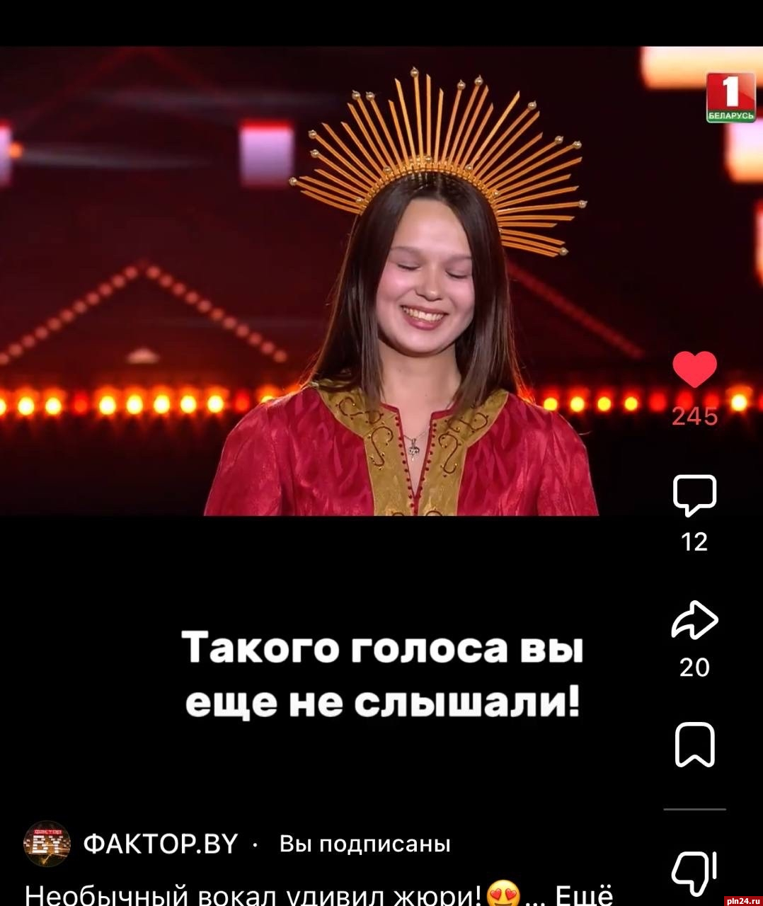 16-летняя жительница Пскова Дарья Романова выступила на телевизионном проекте «Фактор.BY» в Минске. Юная вокалистка получила единогласную поддержку звездного жюри, завоевав все четыре «да».