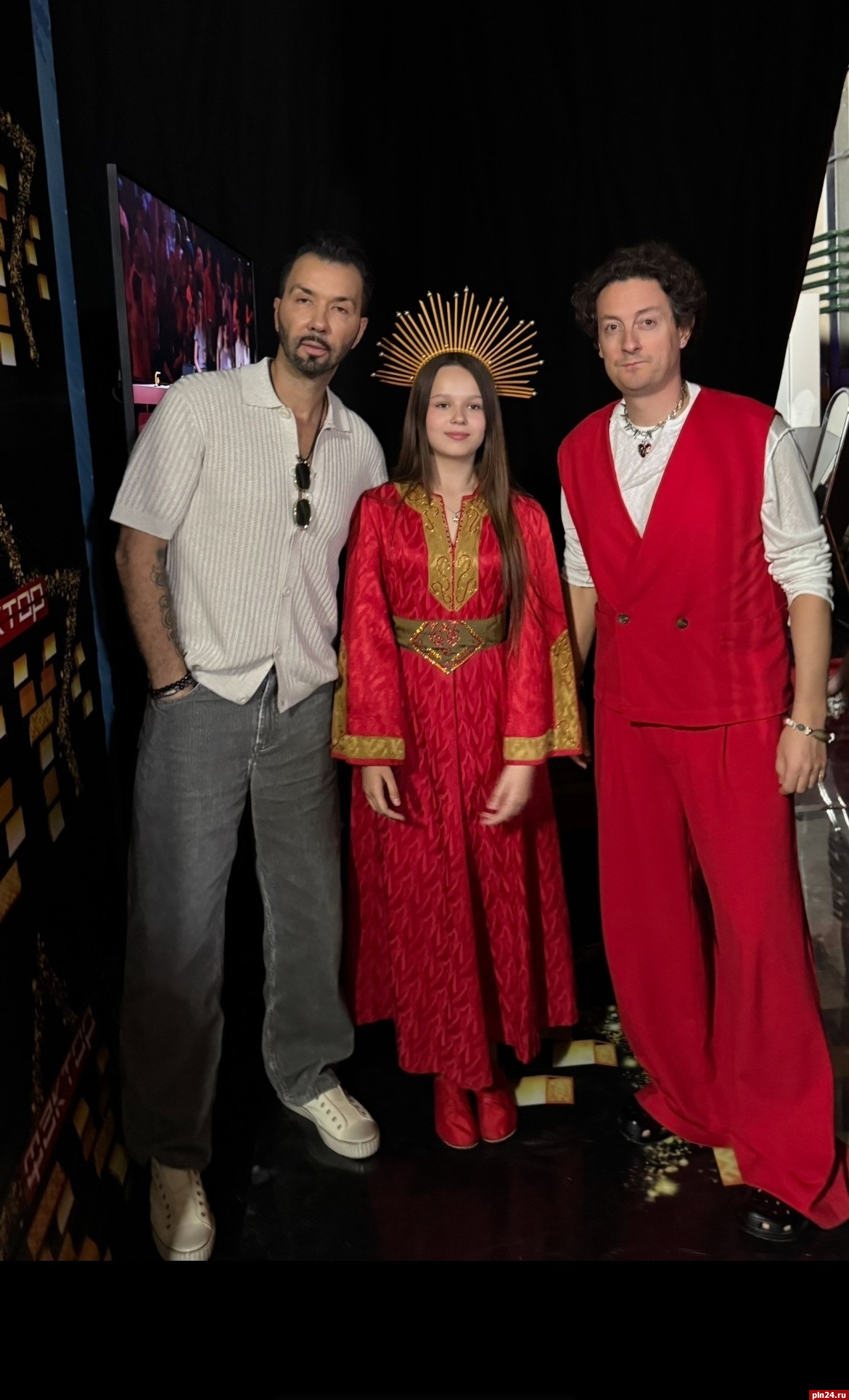 Российский актёр и шоумен Станислав Ярушин в знак восхищения вышел на сцену, чтобы обнять юную певицу и обменяться с ней энергией.