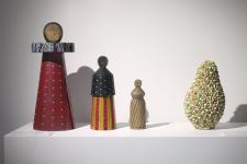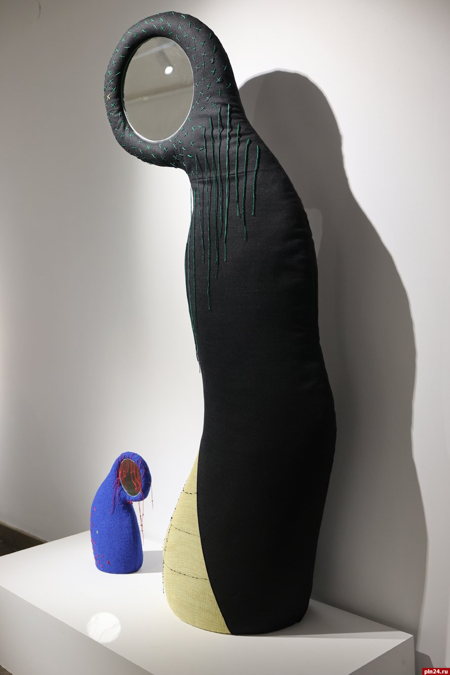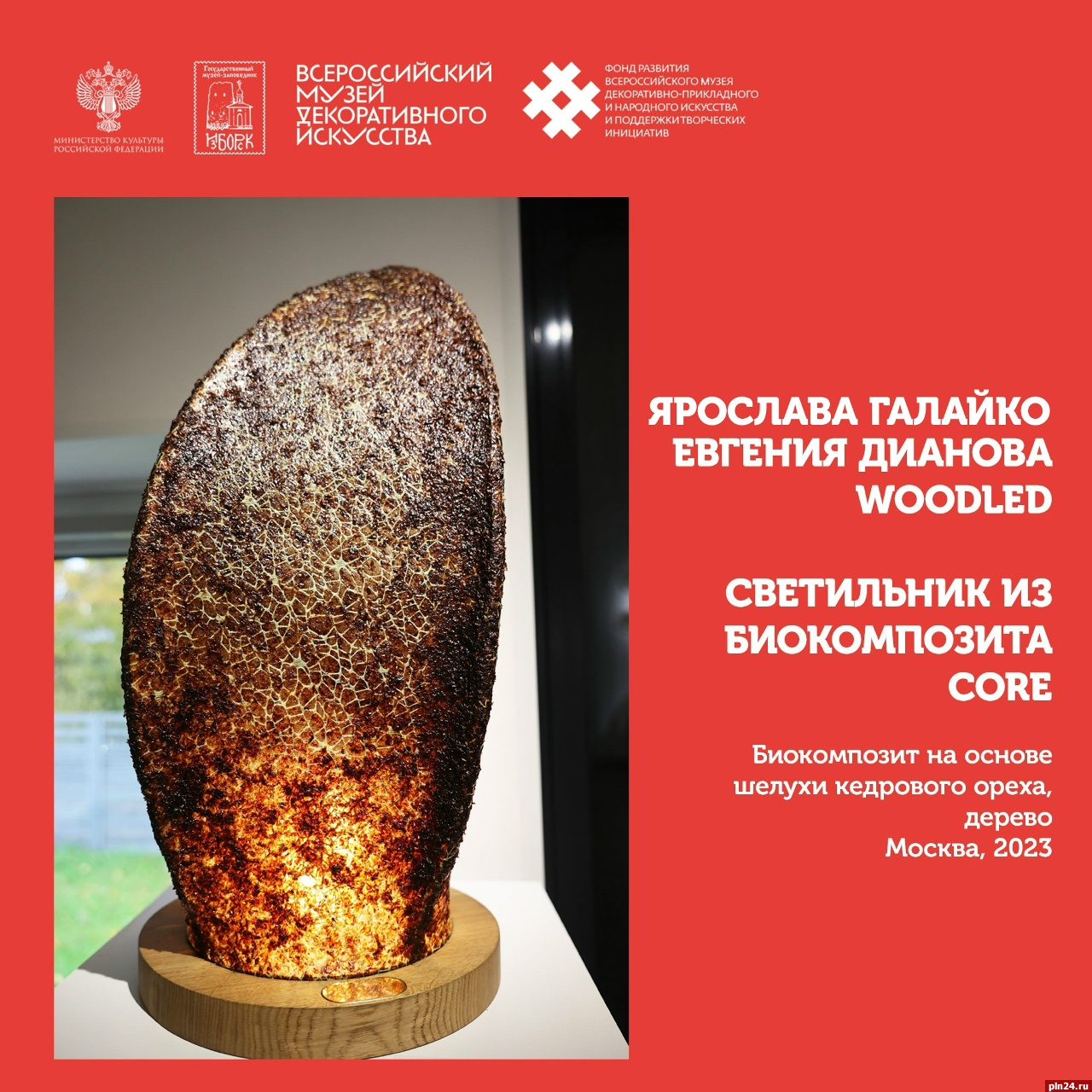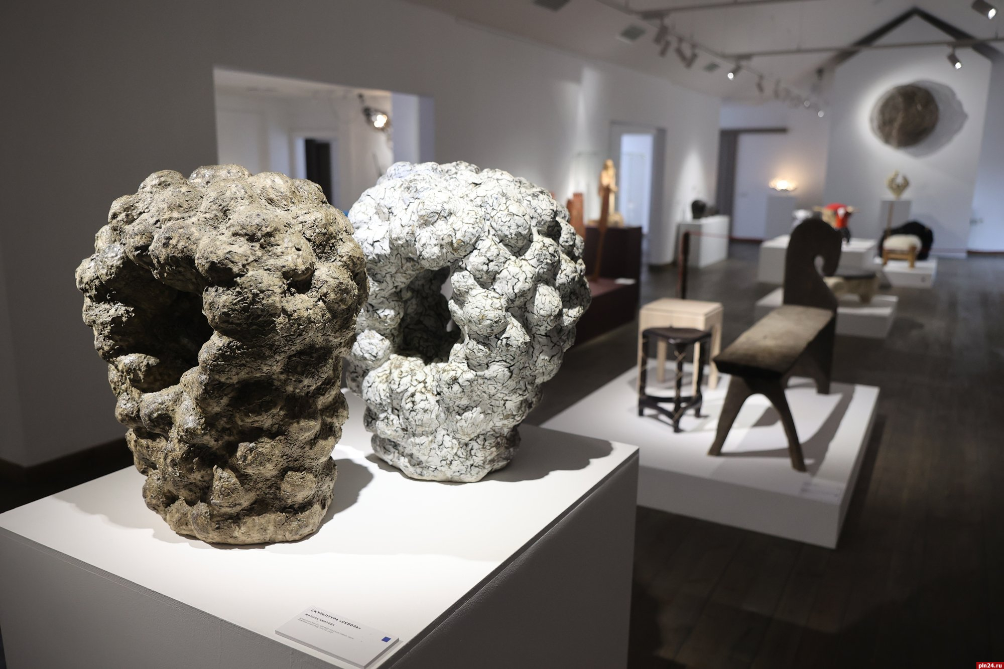Открывают экспозицию керамические скульптуры «СКВОЗЬ» Марины Акиловой – два арт-объекта, ставших визитной карточкой выставки и вдохновленных неолитическим ямчатым орнаментом. Дизайнер стремилась передать ощущение древности, глубины и величия, возникающее на Псковской земле. Чтобы создать эти оригинальные скульптуры, похожие на древние камни, дизайнер использовала технологию послойного нанесения орнамента с эффектом летящей золы и обжиг в дровяной печи. Получилось эффектно и необычно.