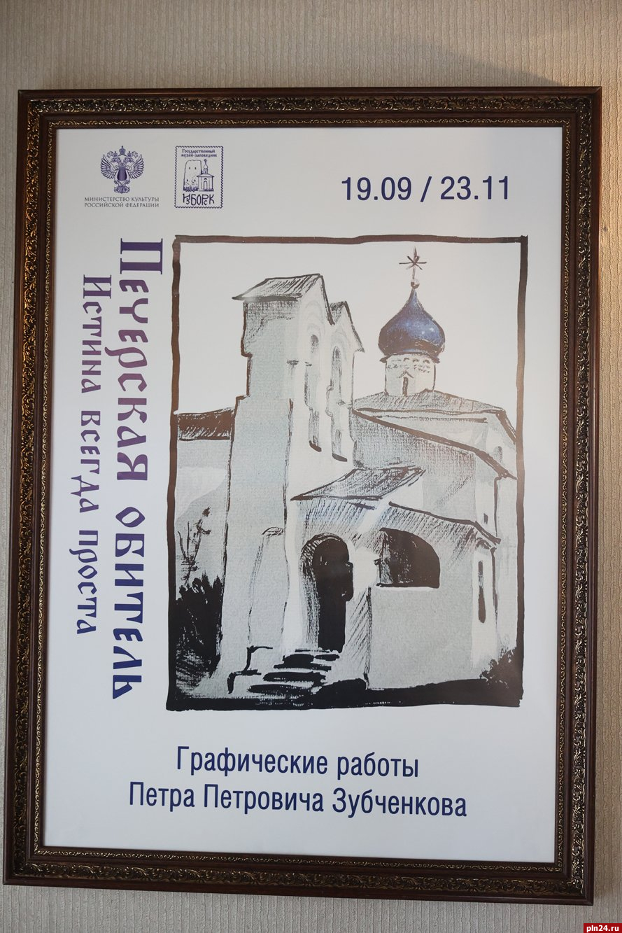 А в Доме купца Белянина продолжает работу выставка из фондов музея «Печерская обитель. Истина всегда проста» художника-графика Петра Петровича Зубченкова. Об этой уникальной коллекции я рассказывал в прошлом выпуске нашей программы, но, разумеется, рассказал не всё, а тут еще неожиданно открылись интереснейшие подробности, можно сказать, маленькая сенсация, о которой нельзя умолчать…