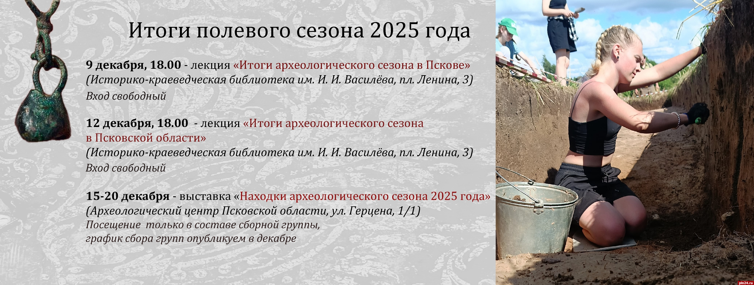На цикл мероприятий, посвященных археологическому сезону 2025 года, приглашают псковичей, сообщили Псковской Ленте Новостей в Археологическом обществе Псковской области.