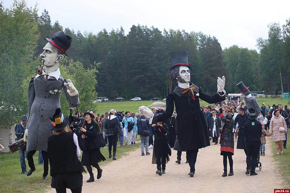 В Пушкинском заповеднике напомнили, что несколько лет подряд, с 2022 года, эти гиганты русской литературы (а в 2023 году ещё и Даниил Хармс заодно с ними) открывали праздничное шествие по улицам Пскова, а затем отправлялись в «Михайловское».
