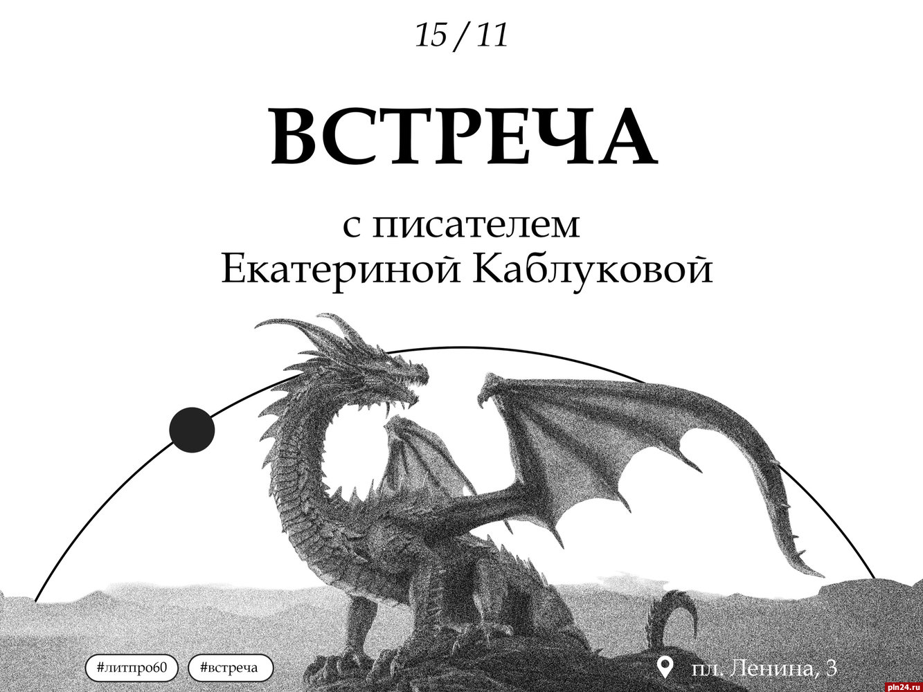 Встреча с российской писательницей Екатериной Каблуковой состоится в псковской библиотеке имени Ивана Василёва 15 ноября, сообщили Псковской Ленте Новостей в Псковском городском молодежном центре.