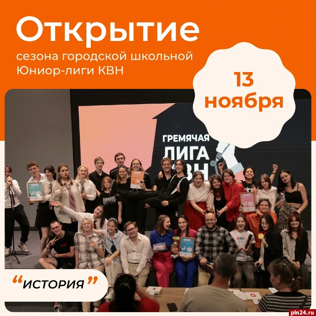 Открытие сезона «Гремячей Юниор-лиги КВН Пскова» состоится 13 ноября в 18:20 в Доме молодежи по адресу: улица Конная, 2, сообщило объединение в своей группе в сети «ВКонтакте».