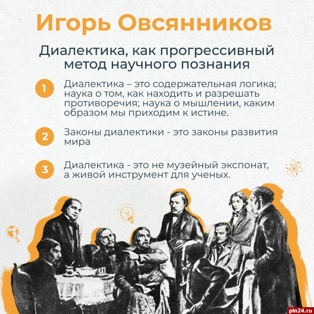 В качестве анонса в библиотеке представили тезисы доклада Игоря Овсянникова под названием «Диалектика, как прогрессивный метод научного познания».