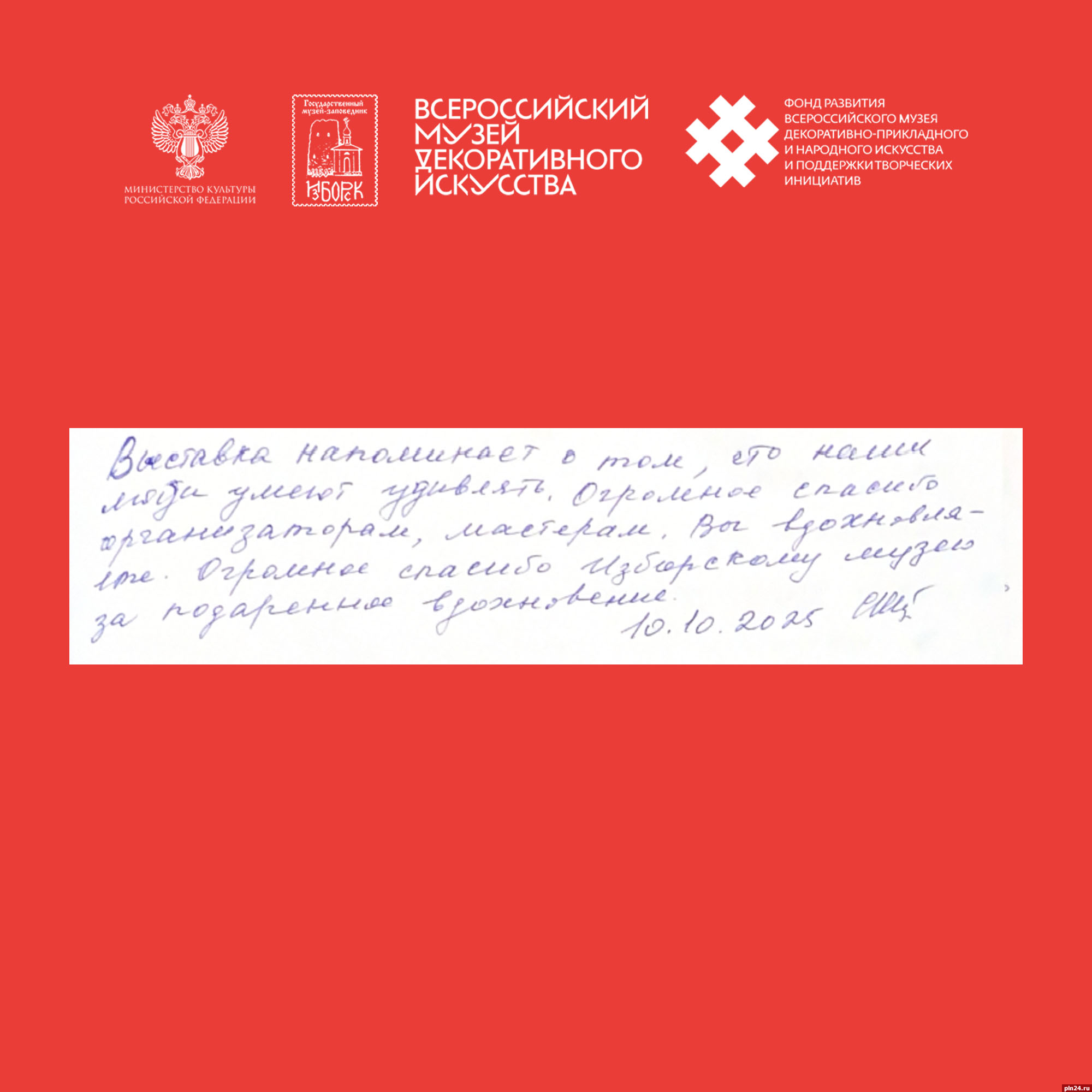 Выставка завершит свою работу уже 30 ноября. Она открыта для посетителей с 10:00 до 17:00 по адресу: Изборск, улица Печорская, дом 37.