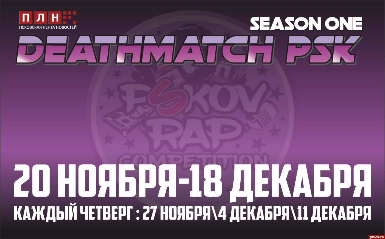 Уже в этот четверг, 20 ноября, стартует отбор на седьмой сезон Pskov Rap Competition (PRC) в новом формате DeathMatch. Вход на мероприятие остается бесплатным с 2011 года, и в этом году организаторы не стали ничего менять. У желающих исполнителей остался последний день для регистрации, сообщили Псковской Ленте Новостей организаторы.
