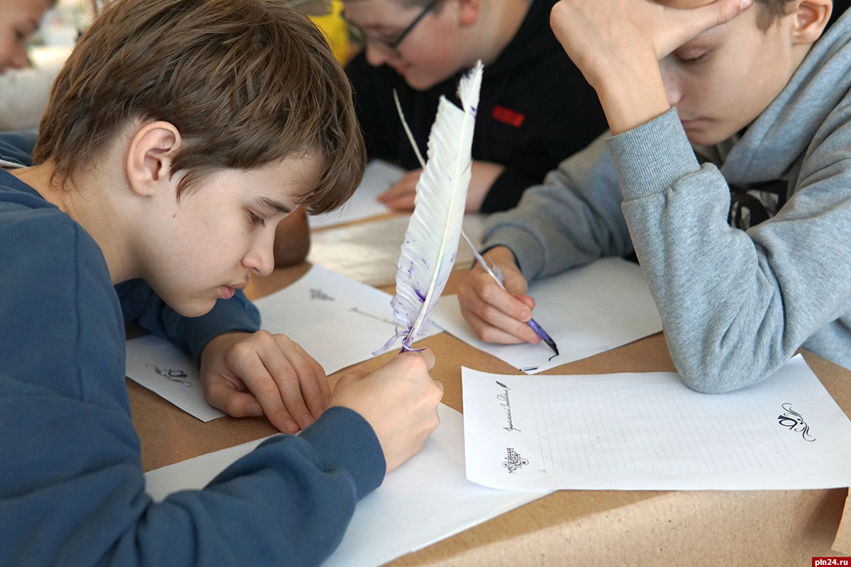 «Ребята познакомились с историей письменных принадлежностей, — рассказала методист и педагог, руководителя отдела просветительной и музейно-образовательной деятельности Пушкинского заповедника Татьяна Тимошина. — Они узнали о том, что в пушкинское время чернила продавались в аптеках, а сам великий поэт предпочитал для работы использовать гусиные перья. Большой интерес у наших гостей вызвали образцы текстов из письмовников конца XIX столетия и переписка родителей Пушкина с их дочерью Ольгой. Завершился музейный урок практическим заданием: написать гусиным или стальным пером письмо родным или друзьям. Интересно, что в итоге многие из этих писем были написаны в стиле XIX века с использованием образцов из старинного письмовника».