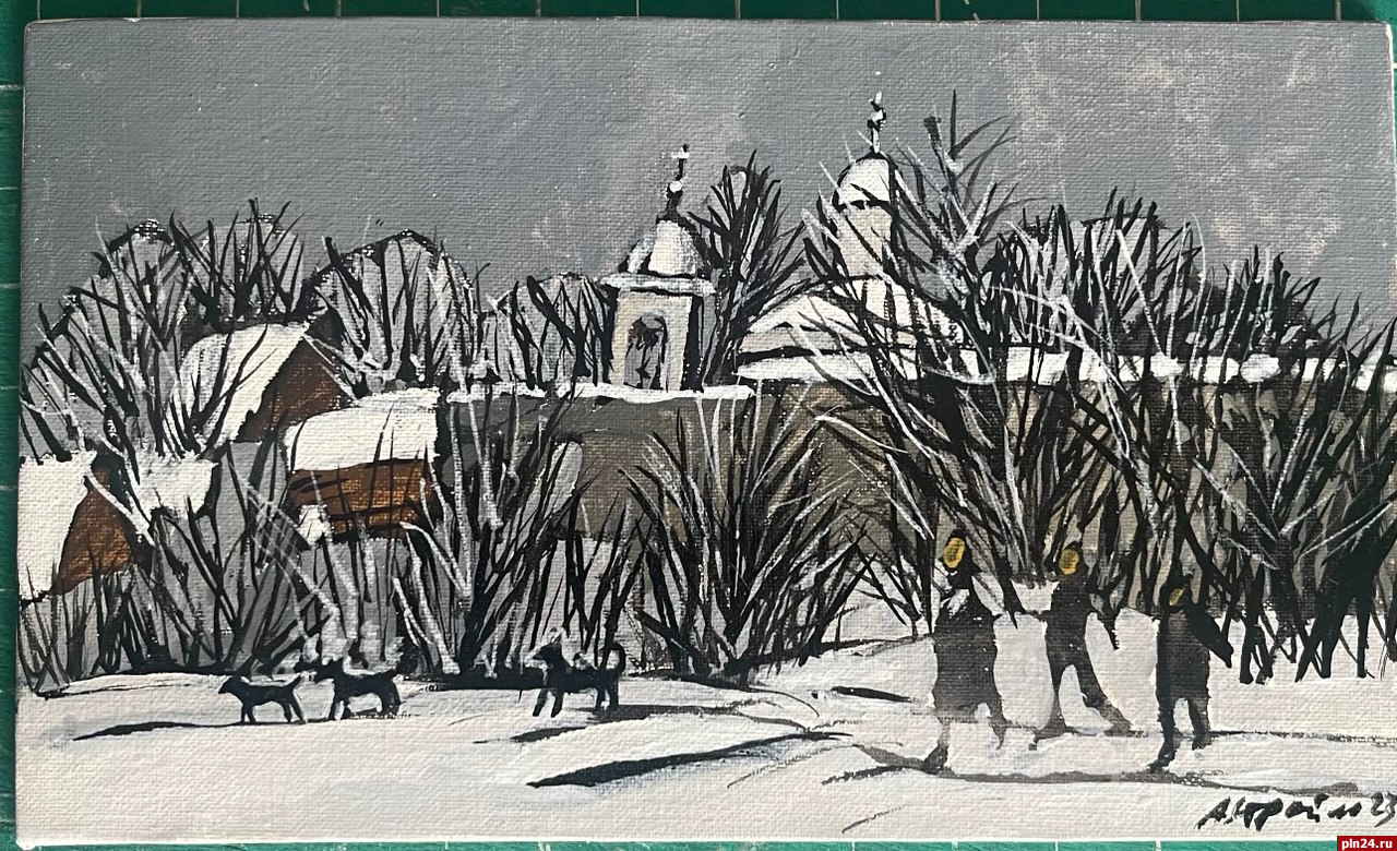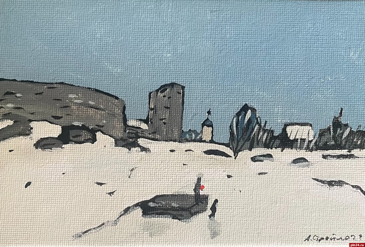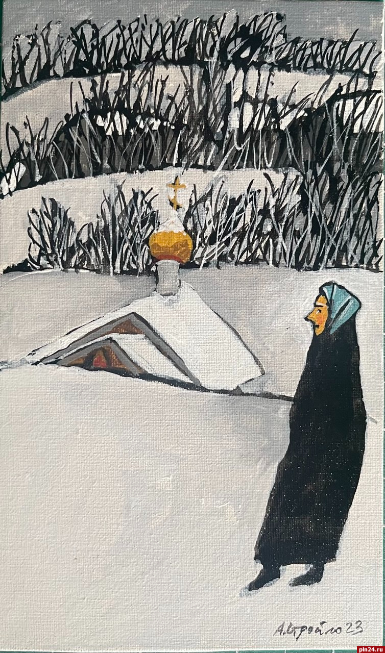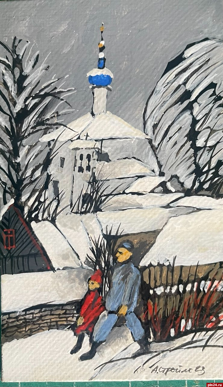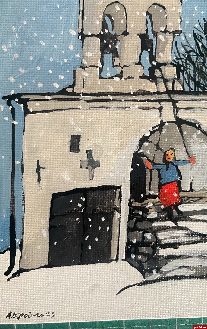 Но есть у Александра Стройло ещё одна сокровенная заслуга: он – гениальный летописец Изборска, его тщательный описатель, ироничный изобразитель и неутомимый исследователь. И этим летом художник был частым гостем в Изборске – вместе с друзьями и единомышленниками занимается восстановлением храма Рождества Богородицы.