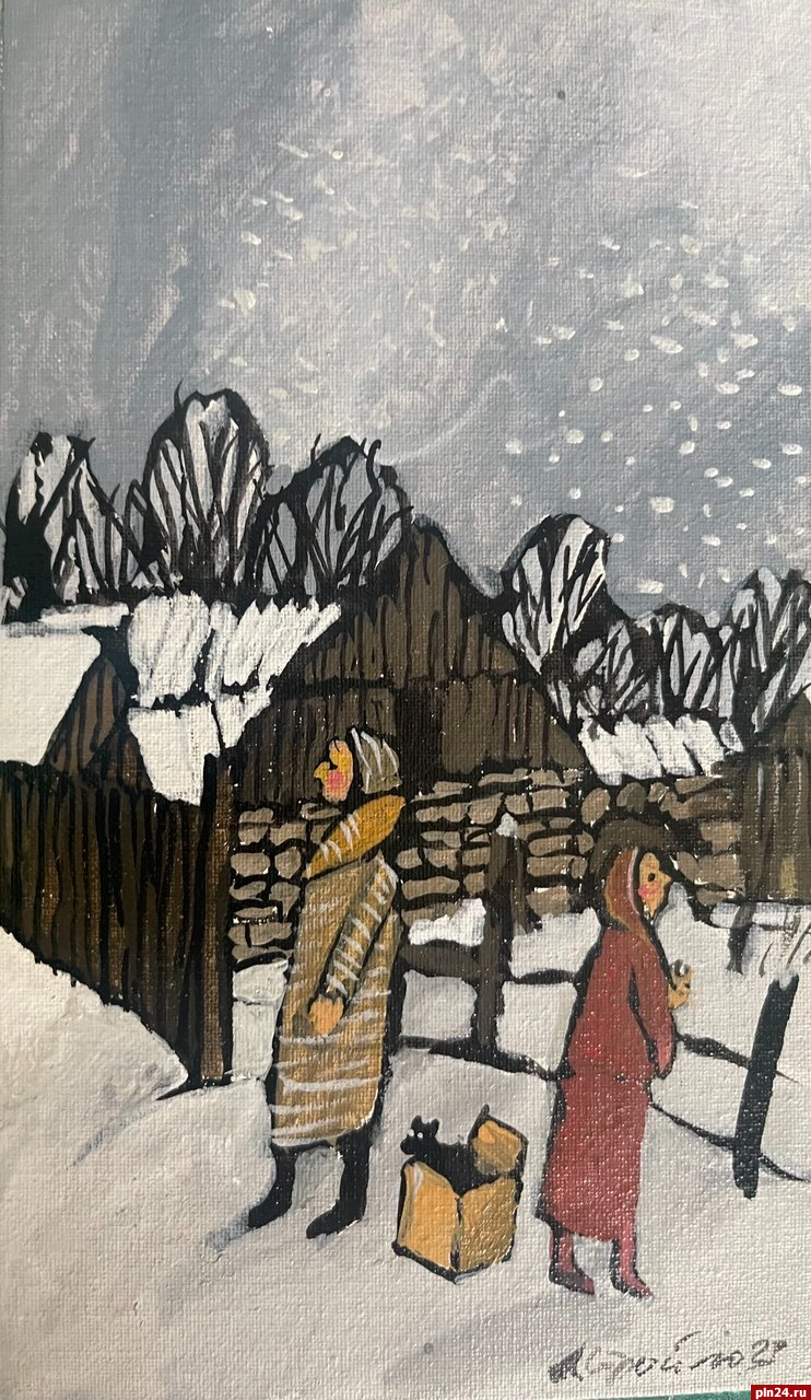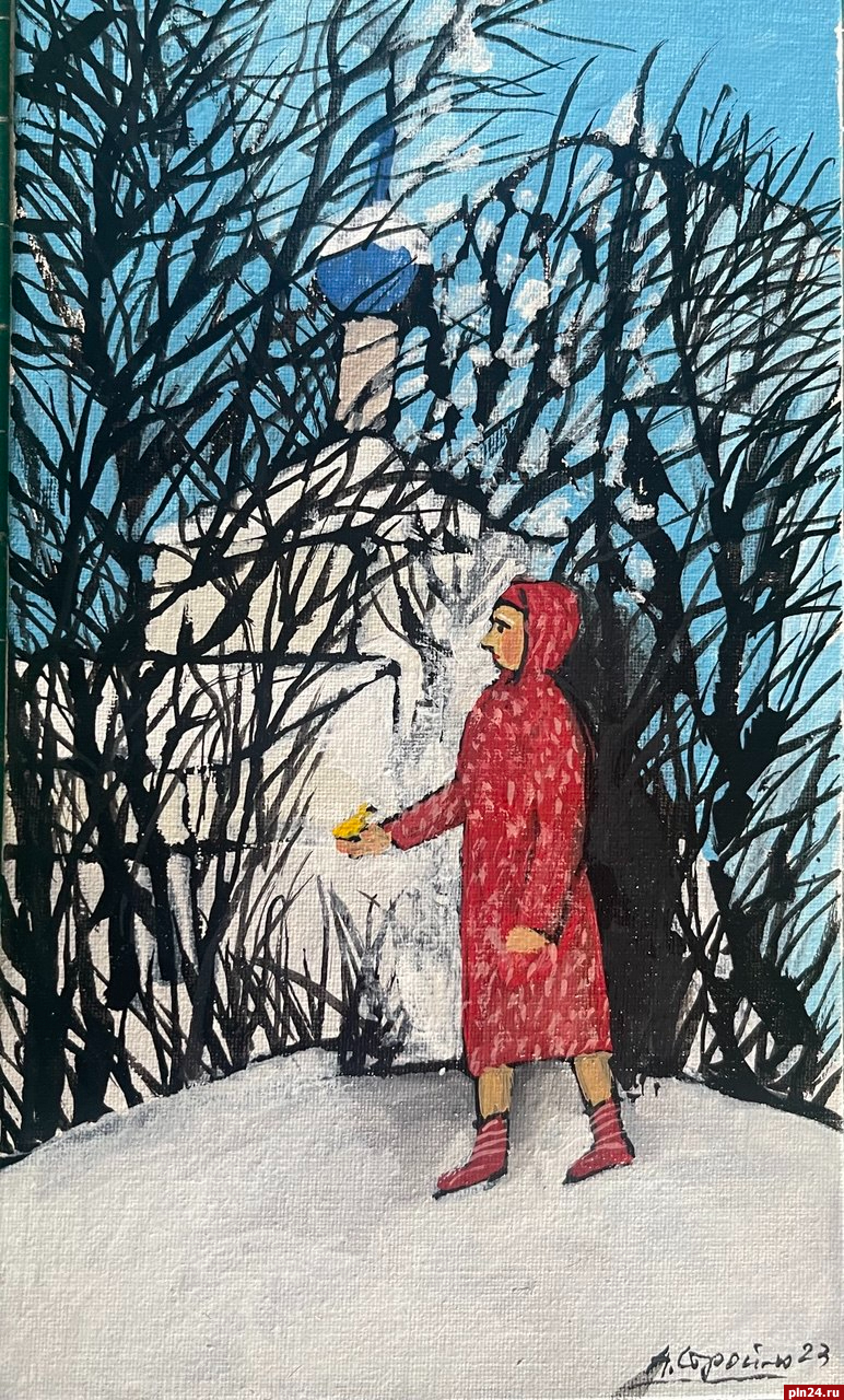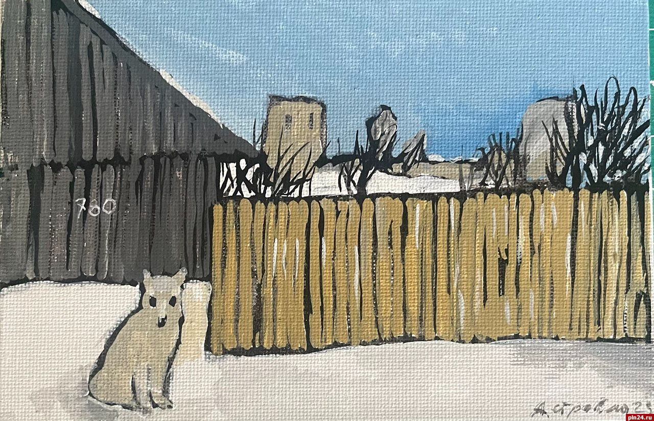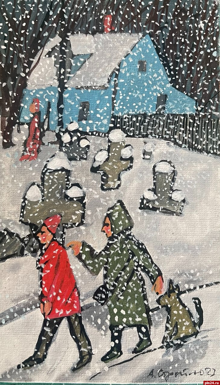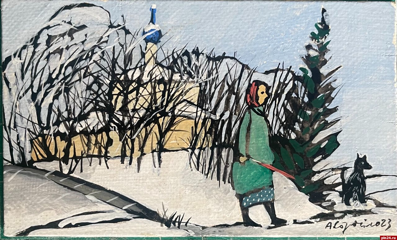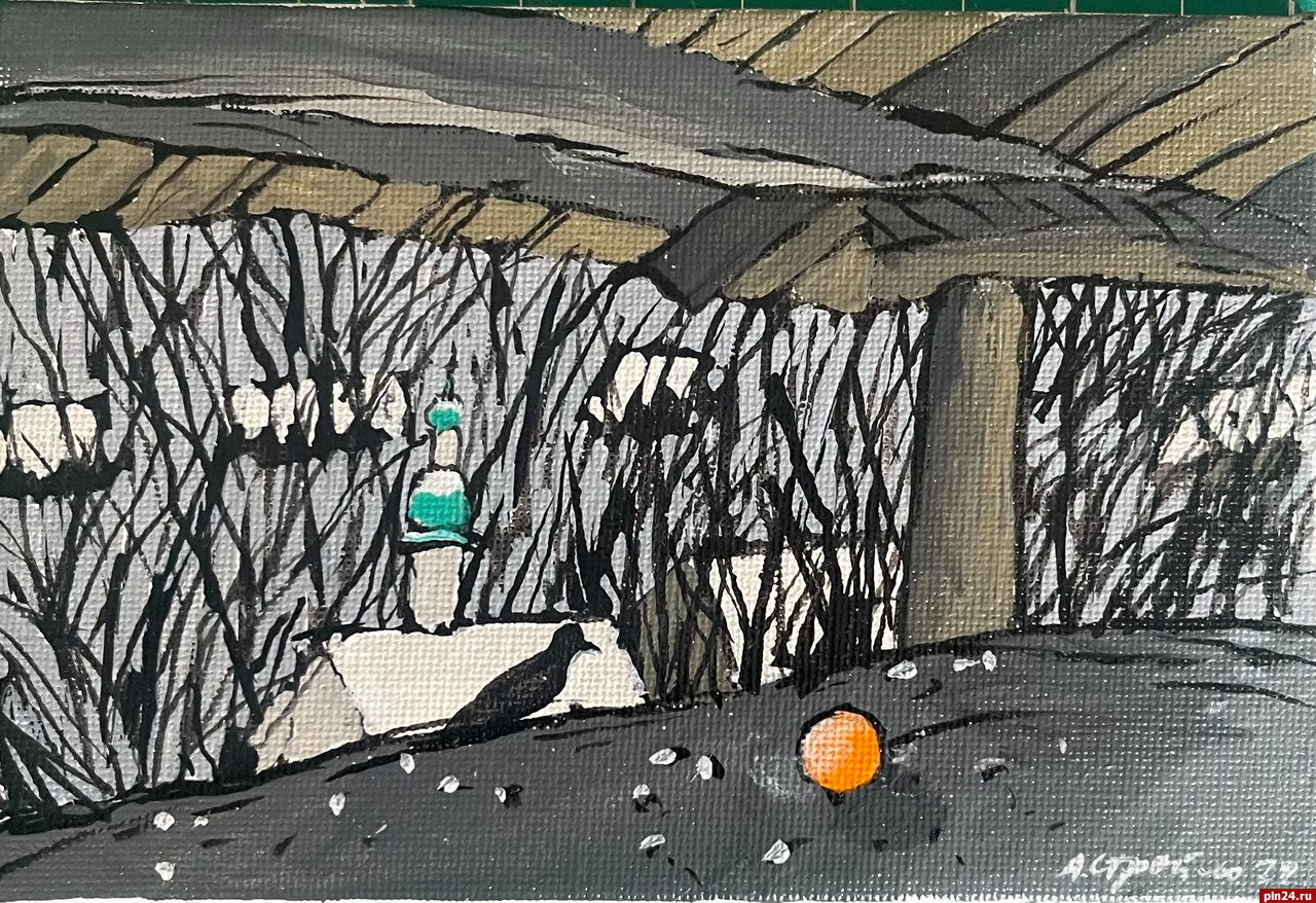 Но есть у Александра Стройло ещё одна сокровенная заслуга: он – гениальный летописец Изборска, его тщательный описатель, ироничный изобразитель и неутомимый исследователь. И этим летом художник был частым гостем в Изборске – вместе с друзьями и единомышленниками занимается восстановлением храма Рождества Богородицы.