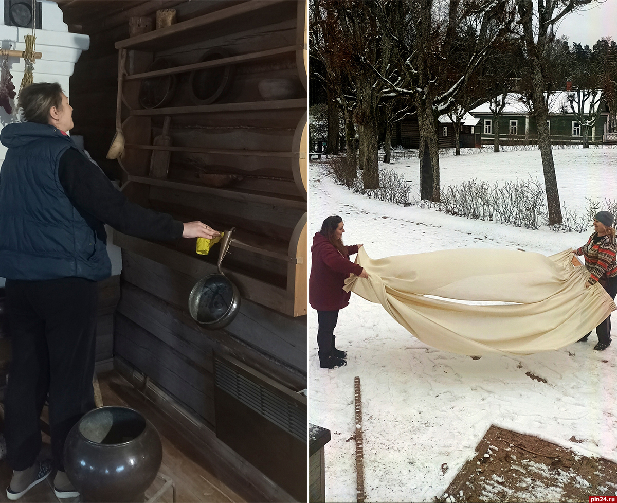 В музее-усадьбе «Михайловское» в составе Государственного Пушкинского заповедника завершают плановые санитарные работы. Как рассказала корреспонденту Псковской Ленты Новостей хранитель мемориального имения Пушкиных и Ганнибалов Юлия Узенёва, сейчас смотрители приводят в порядок экспозиционные залы и проводят генеральную уборку после чрезвычайно многолюдного экскурсионного сезона. Хранитель и научные сотрудники проверяют состояние музейных предметов, а также проводят их обеспыливание. Специалисты ремонтно-строительного отдела завершают покраску потолка, стен и пола в кабинете поэта.