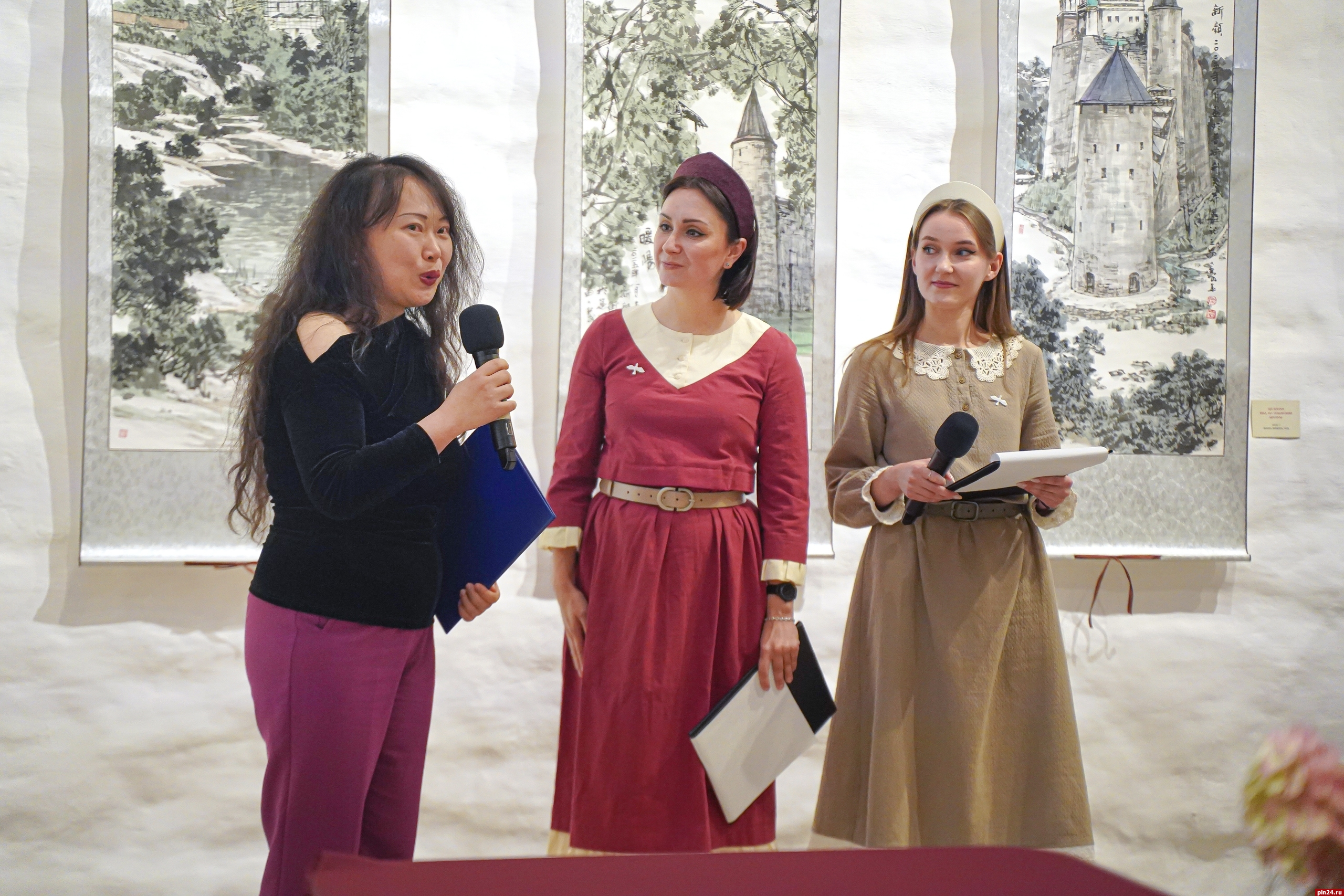 На выставке «Пересечение миров: где встречаются души Востока и Запада» во Дворе Постникова представлены работы китайского художника и скульптора Чжан Сюэнин. Как сообщили Псковской Ленте Новостей в пресс-службе Псковского музея-заповедника, она не только представила 10 своих работ на псковской выставке, но также является ее куратором.