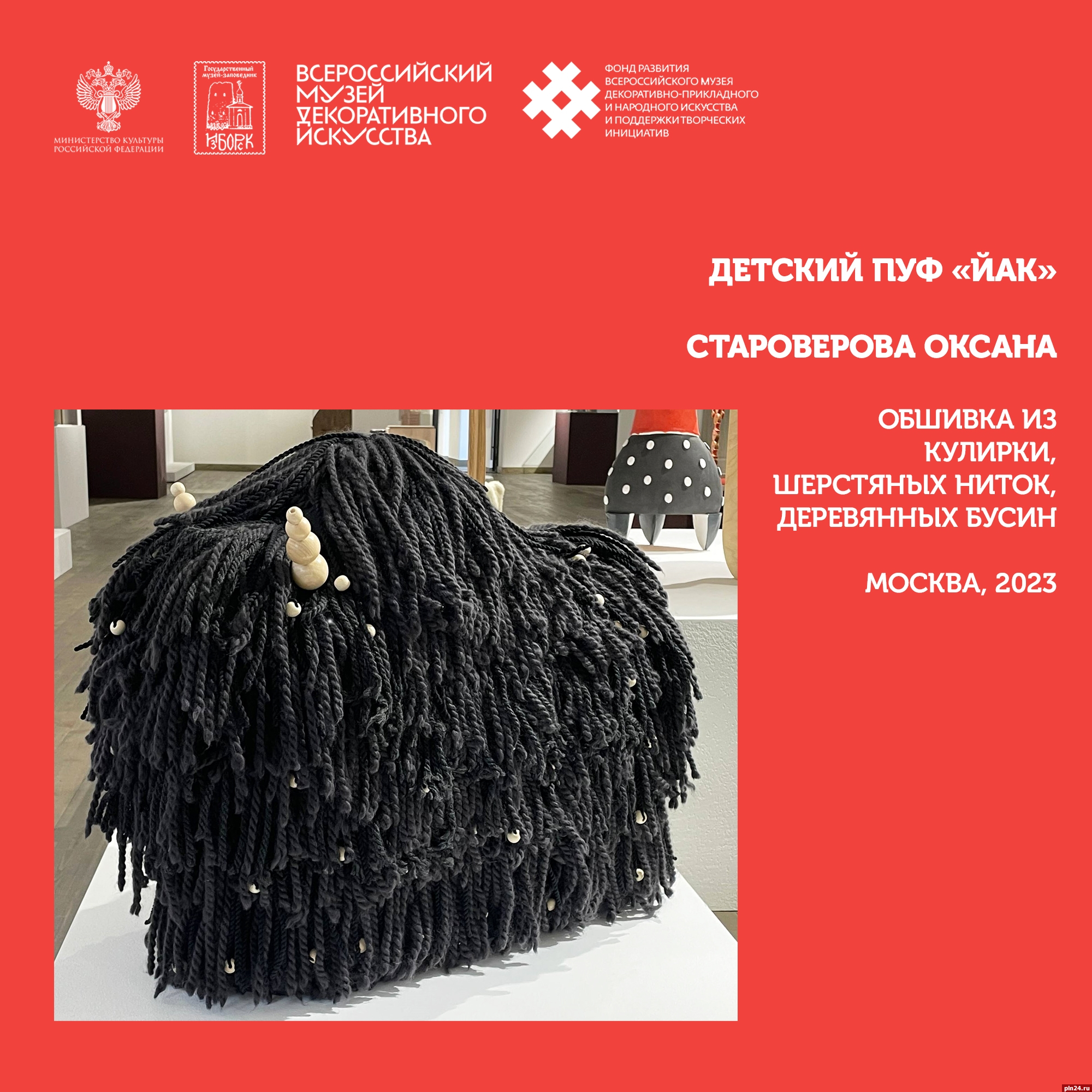 «Пуф "Йак" Оксаны Староверовой напоминает образ свирепого тибетского быка, в то же время являясь антиподом реального животного за счет своей милости и привлекательности», - сообщили в музее.