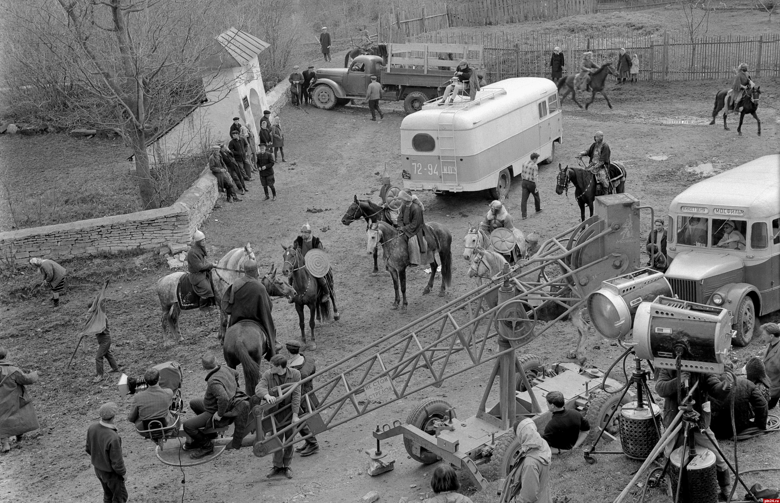 Напомним, что осенью 1965 года киногруппа под руководством режиссера Андрея Тарковского и оператора Вадима Юсова снимала в Изборске и его округе несколько эпизодов фильма. В Изборской крепости специалистами Псковской реставрационной мастерской были выстроены масштабные декорации, «изображавшие» город Владимир начала XV века. Научным консультантом по материальной культуре на съемках картины работал молодой тогда искусствовед и реставратор Савва Ямщиков. Ныне кинокартина «Андрей Рублев» входит во все самые значимые списки признанных шедевров и рейтинги лучших фильмов мира.